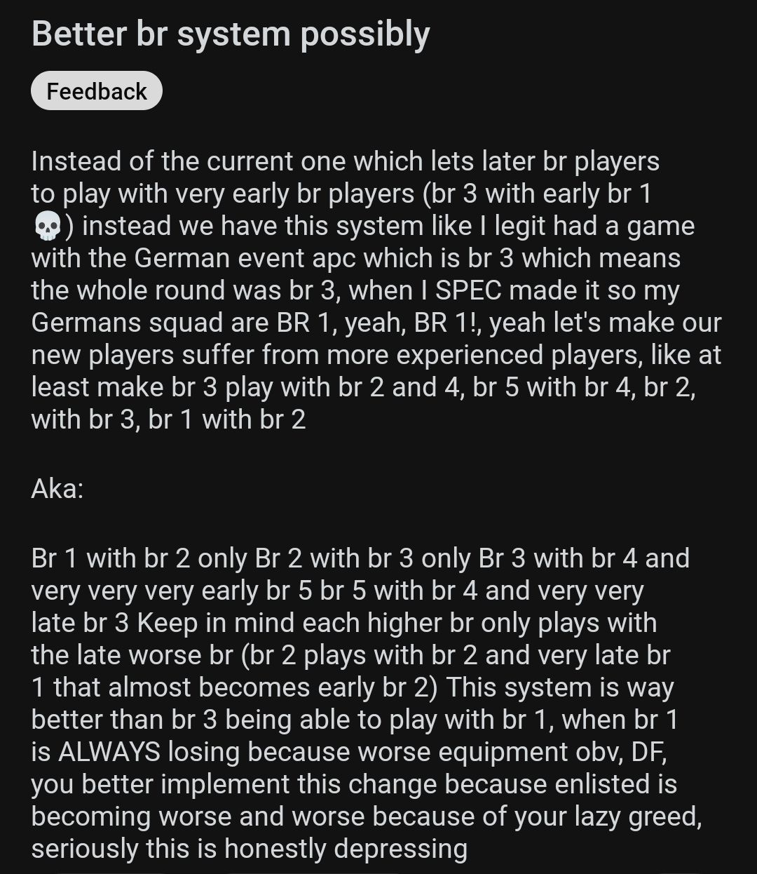 its a skillis issue thats what the aimbot users say all the time lol br 1 v br 3 is normal u have a 3 round machine gun as the japs and yanks have browing or a bar lol lmg seems fair to me oh jaos have no mg posts the germans do so th etire pacific campaign the japs didnt have bunkers with mg posts hahahha cos the they dont care about the balance or br its s just a fake smile pay up or fuckoff is their motto