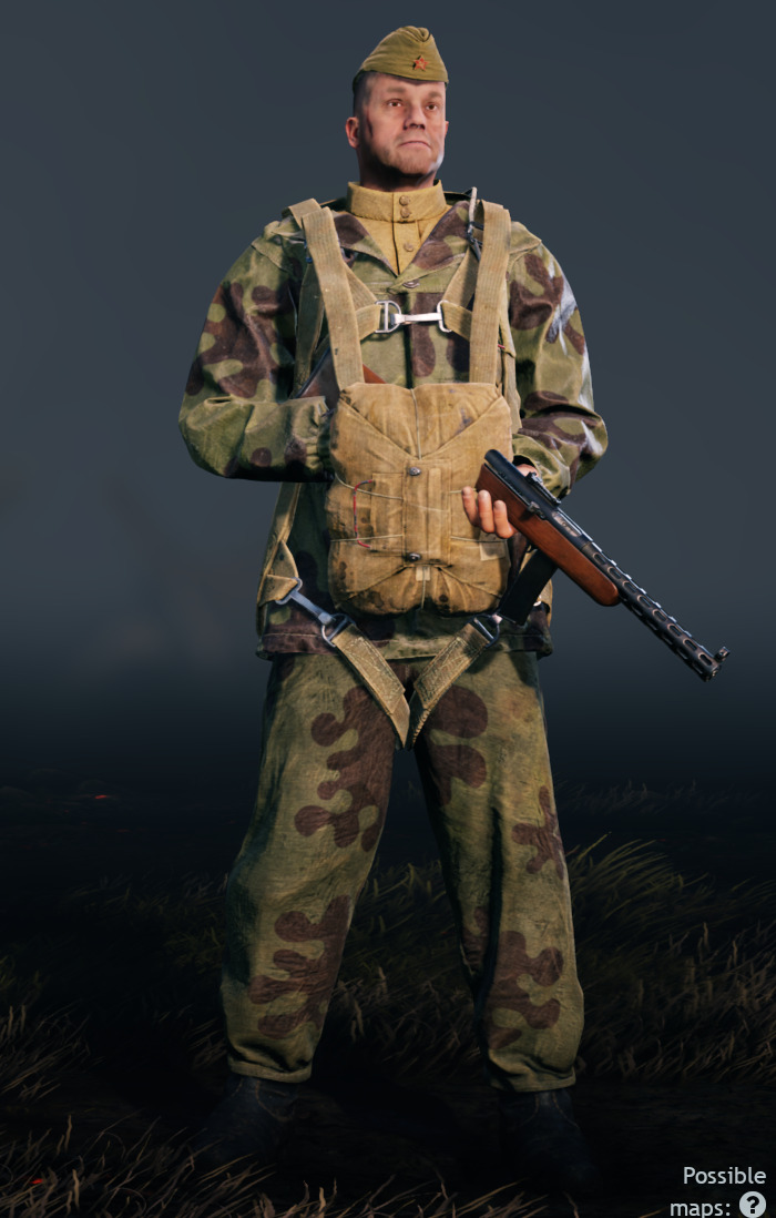 For soldiers in parachutes, cuirasses and other bulky equipment that they wear on their chest, it is better to adopt a pose in which they hold their weapons at the side, on the shoulder or in their hands, not pressing them to the chest.