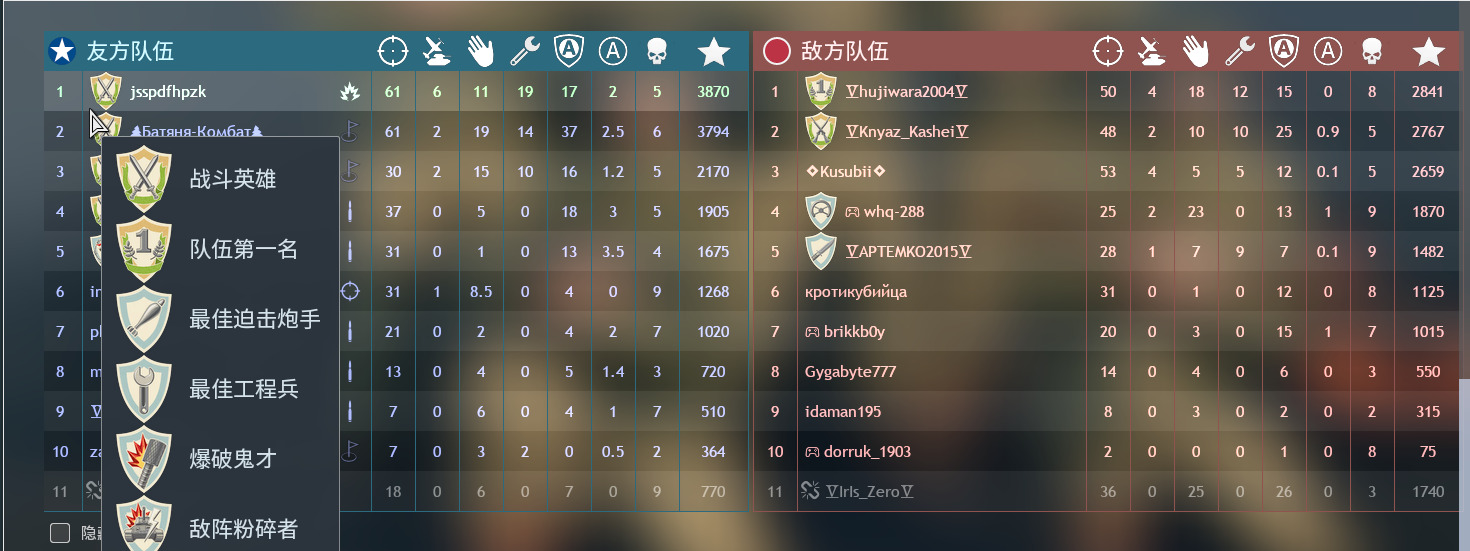 And its especially after playing an enlisted match that are known for lasting a while, I believe if a player for example destroy 5 tanks they should get Something like “Among best Anti tank” something like that so you could like have 3 people with the Best fighter pilot at the end of a game with the same award.