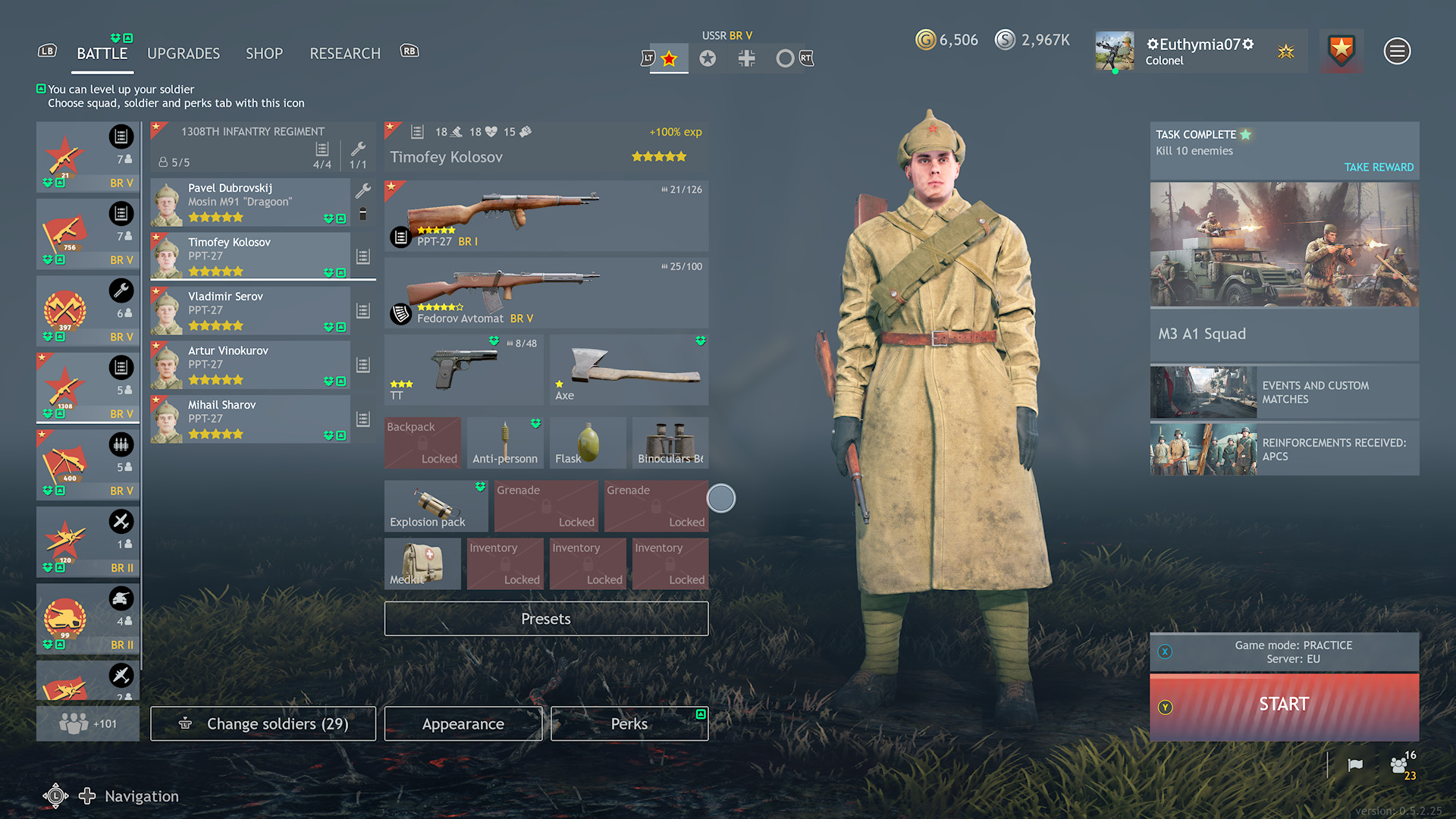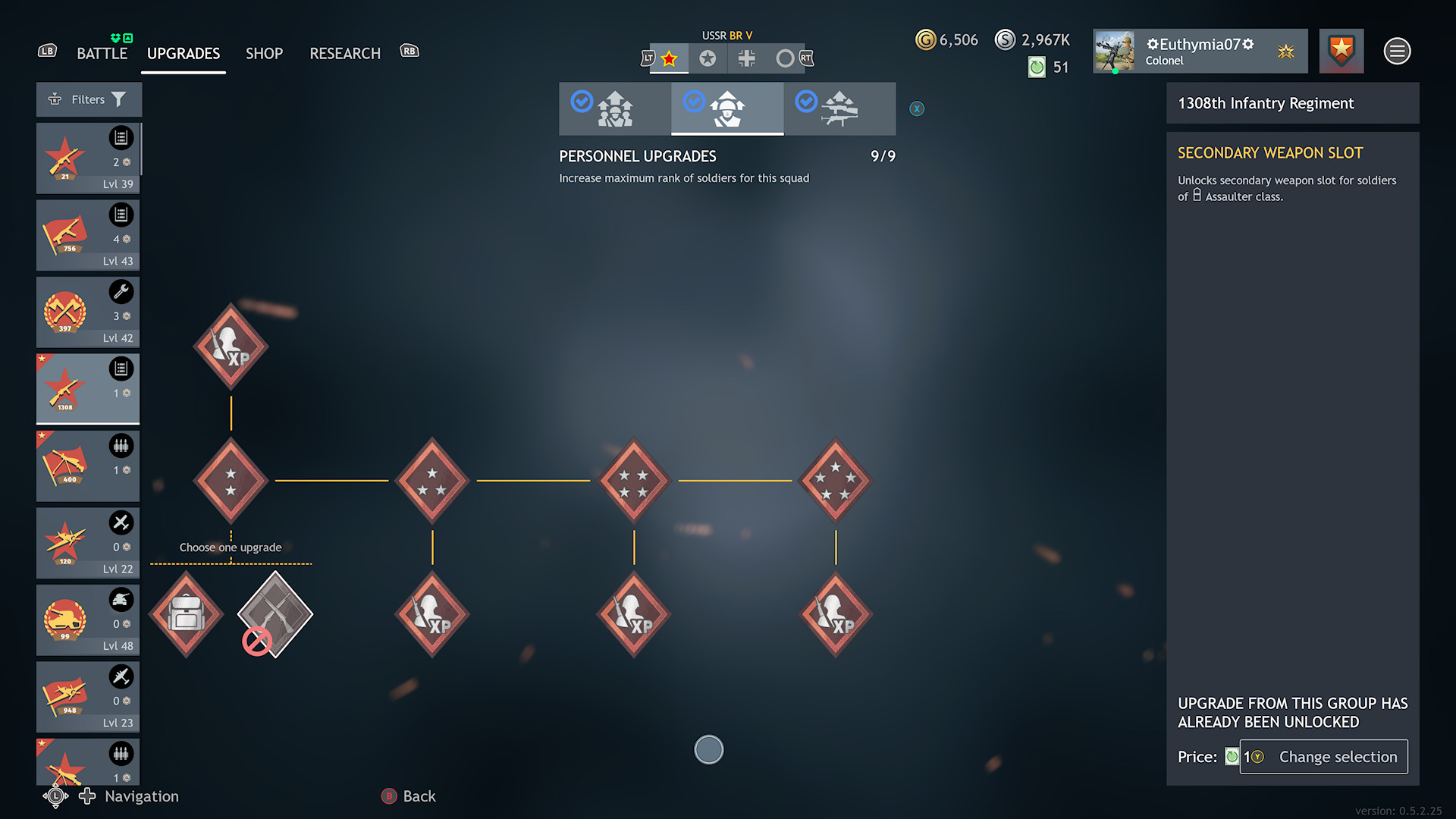 Still 30 squad upgrade orders left despite clicking “Apply selection” repeatedly. Still same status on backpack/second weapon selection on all 3 squad even after relogging.