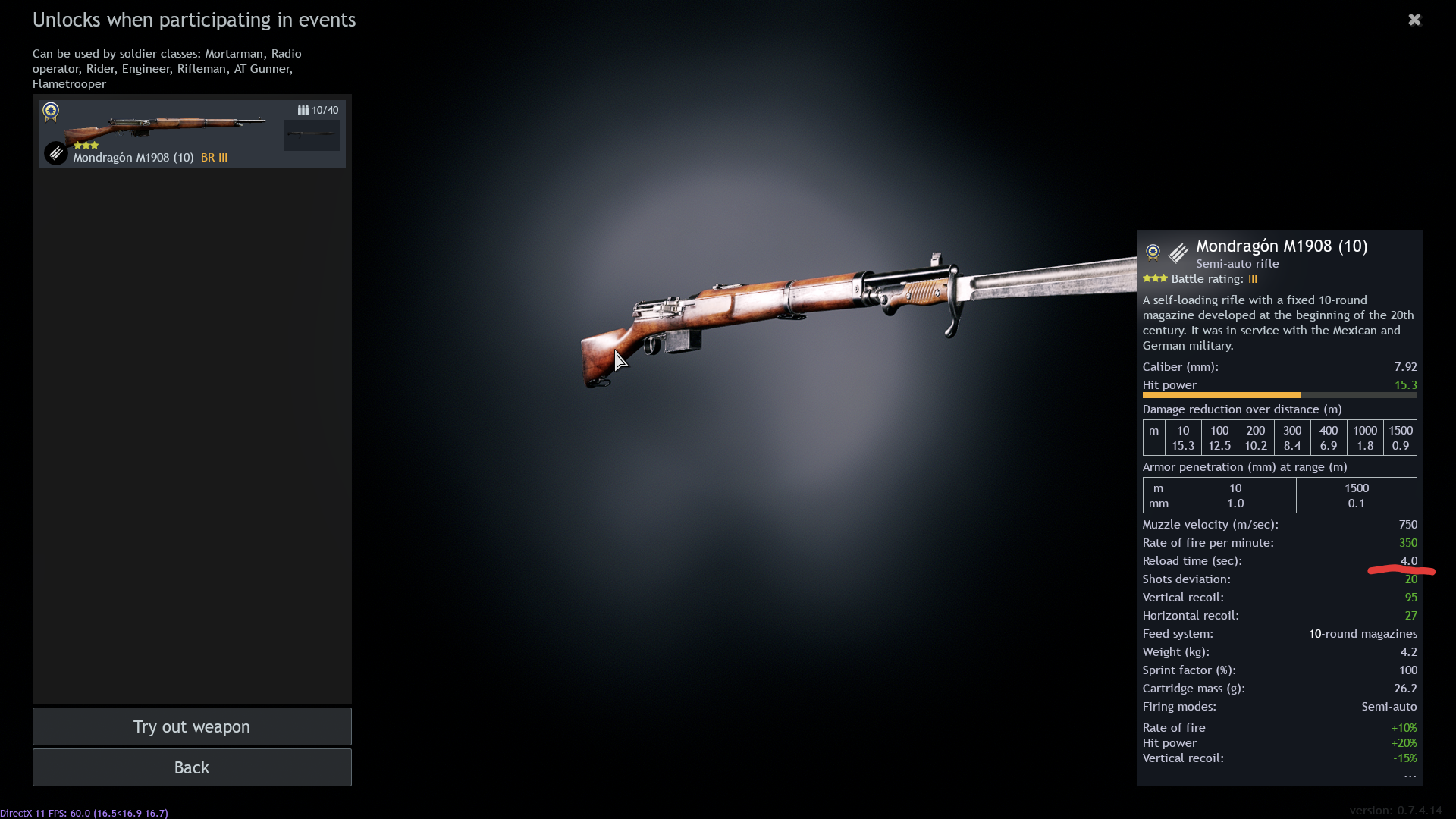 The event reward weapon doesn’t need a reduced reload speed. Unless the developers improve the G-41 semi-automatic rifle, let’s leave the Mondragon as it is. After all, why shouldn’t Axis players have something that Allied players have among Tier 3 weapons? After all, you broke the rules first.
