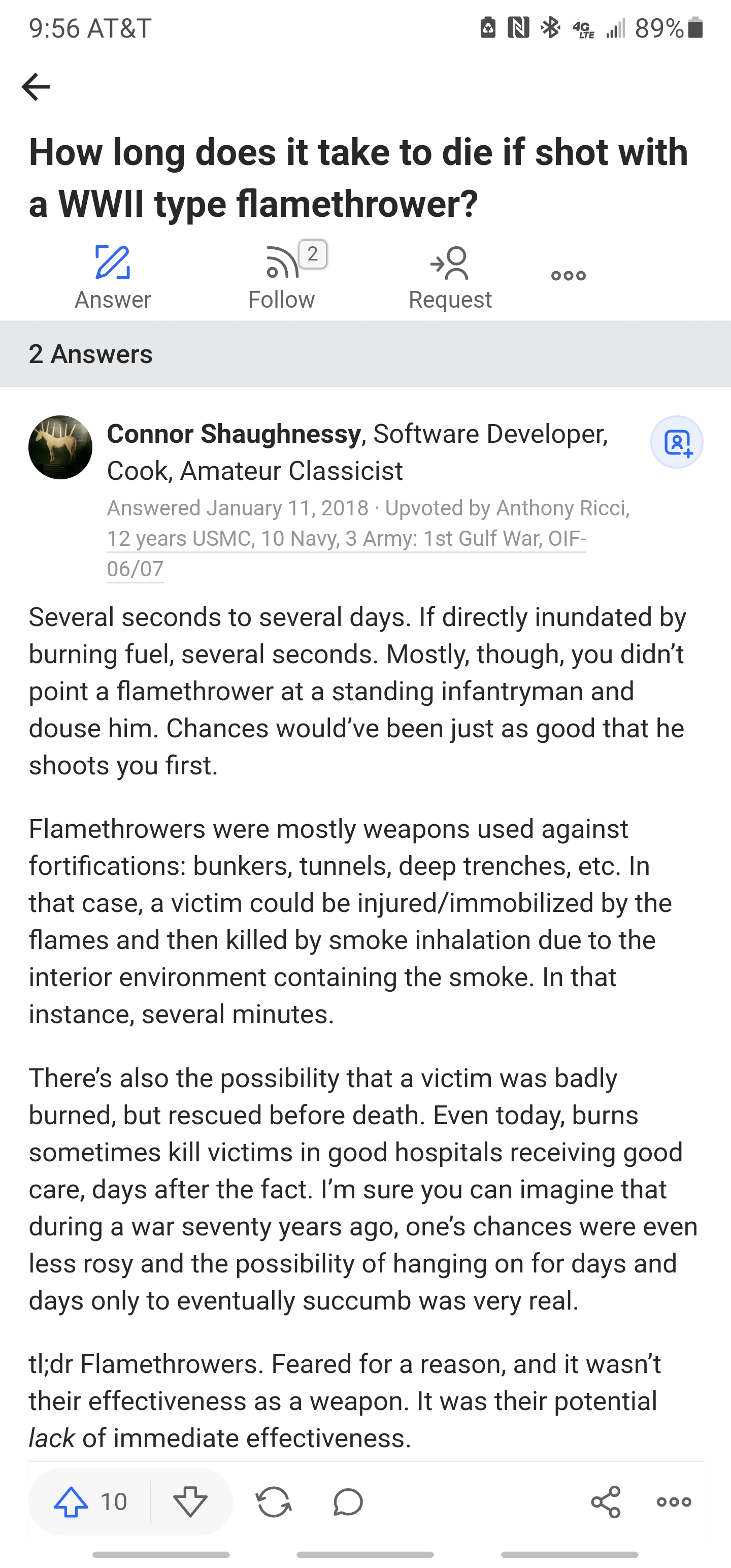 Imho, flamethrowers don’t need “one-tap” killing power, but they definitely need one-tap INCAPACITATING power. In the aforementioned example, If I storm a room and successfully hose everybody before being shot, I shouldn’t worry about immediate retaliation by those I hit. Hitting a soldier with the fire stream should guarantee setting him on fire, which in turn should work just like being downed: severe movement limitation, no action allowed unless putting out the fire first. Or, at the very least, while on fire there should be a severe distortion to visual and aiming, kinda like the effect of a nearby explosion.