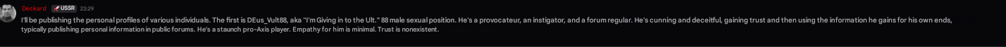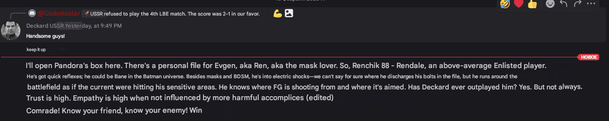 No, Deckard, you’re mixing up cause and effect. I haven’t bothered anyone, including you, not even with my feet, but then people send me the nasty stuff you posted, which later disappeared. And a new dossier too, plus all kinds of other crap, even though I didn’t give you any reason.