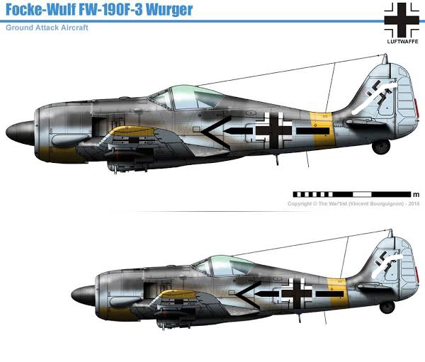 This FW 190 F-3 is for the BR III to be the counterpart of the IL-2M Type 3 which is in that BR with the following armament:2 VYa-23 23 mm, 2 ShKAS 7.62 mm, Berezin UB 12.7 mm, 4 100 kg bombs and 4 RS-132