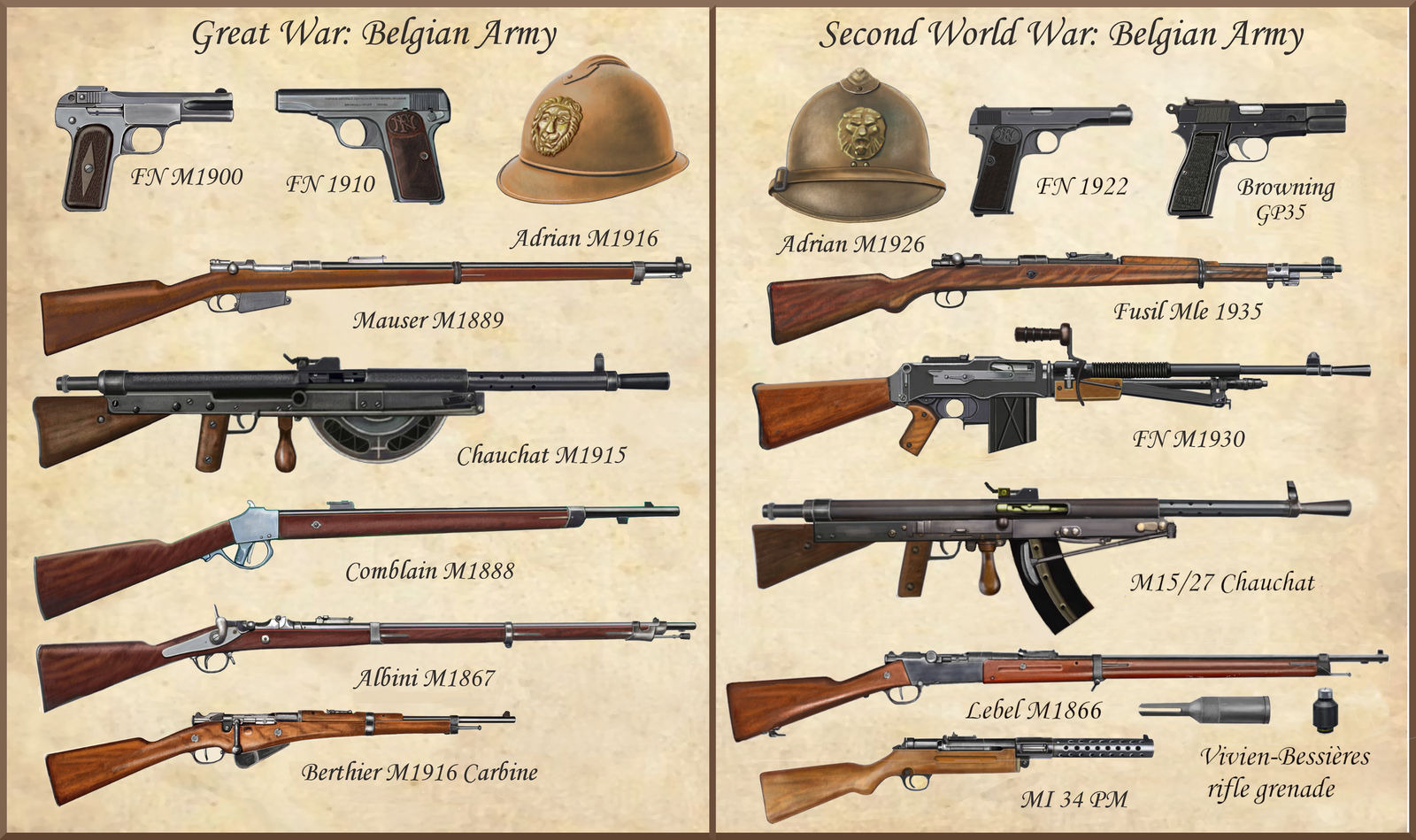 Rifles include Gewehr 33/40 (stand in for Belgian Mauser Model 1935) and Winchester 1866 (with Winchester M1894 from the previous event as a stand in)