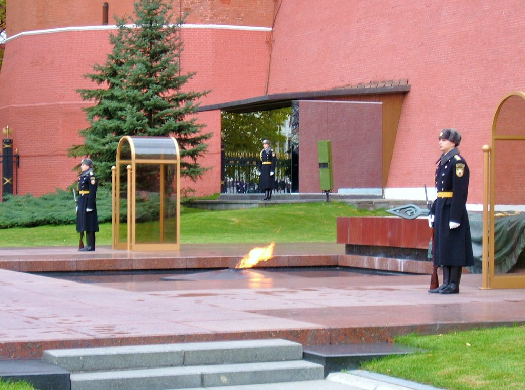 Also its a great story about an opening of that memorial on your photo. In 1960-s a soldier corps was found about 30-40 miles near Moscow while a highway construction. No one knows - who is he. And then people recognise it was a battle in 1941 - last stand near a city nazis can reach. Despite no one found his name he was carried by hands to a center and buried near a Kremlin wall.