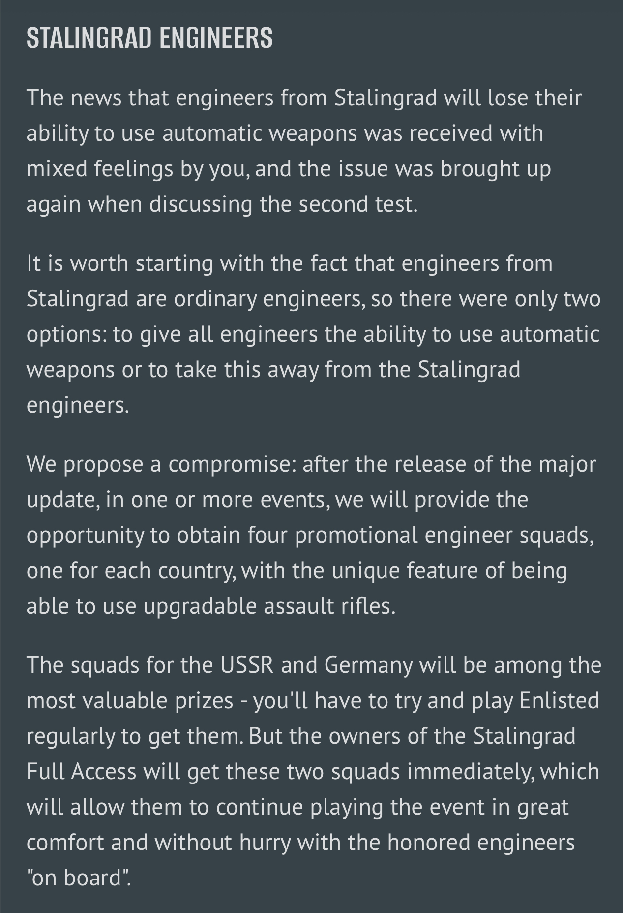They promised Stalingrad Engies. Here they are! Oh no! You either have to complete the event OR wait for it to end because of their limitations be it knowledge, resources, or coding limitations forcing this to be the only option they could give us. How terrible. My thoughts and prayers to you and your loved ones
