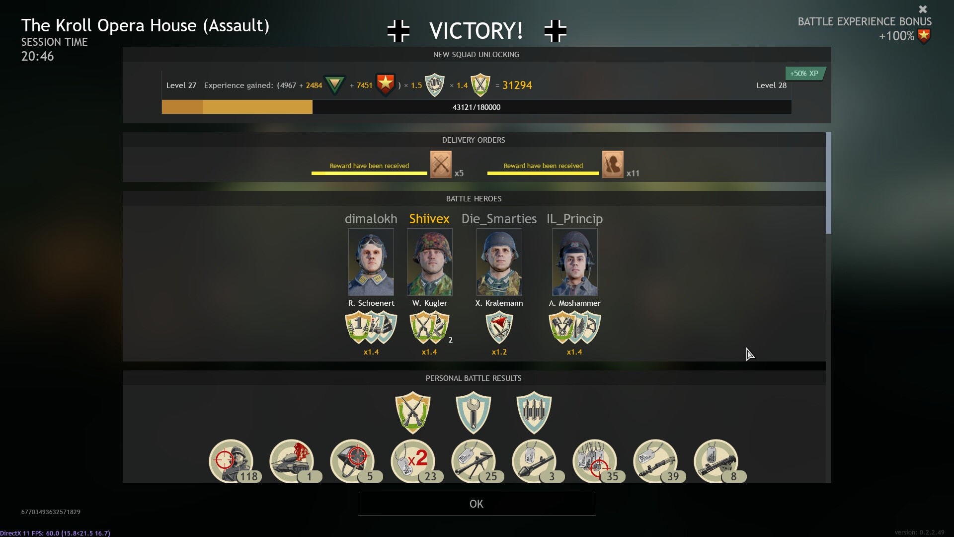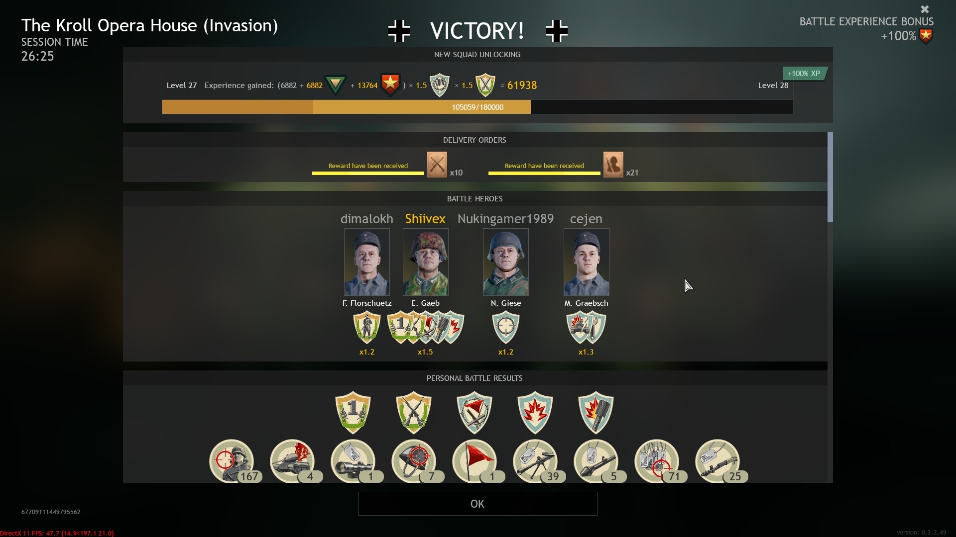 Exploring the new upgrade system I just discovered something… Remember the special russian Assaulter squad in Berlin from the event we had? Each of them costs 54 bronze orders to upgrade to rank 5. No, thank you. I shall hold onto my orders until I find these prices reasonable.