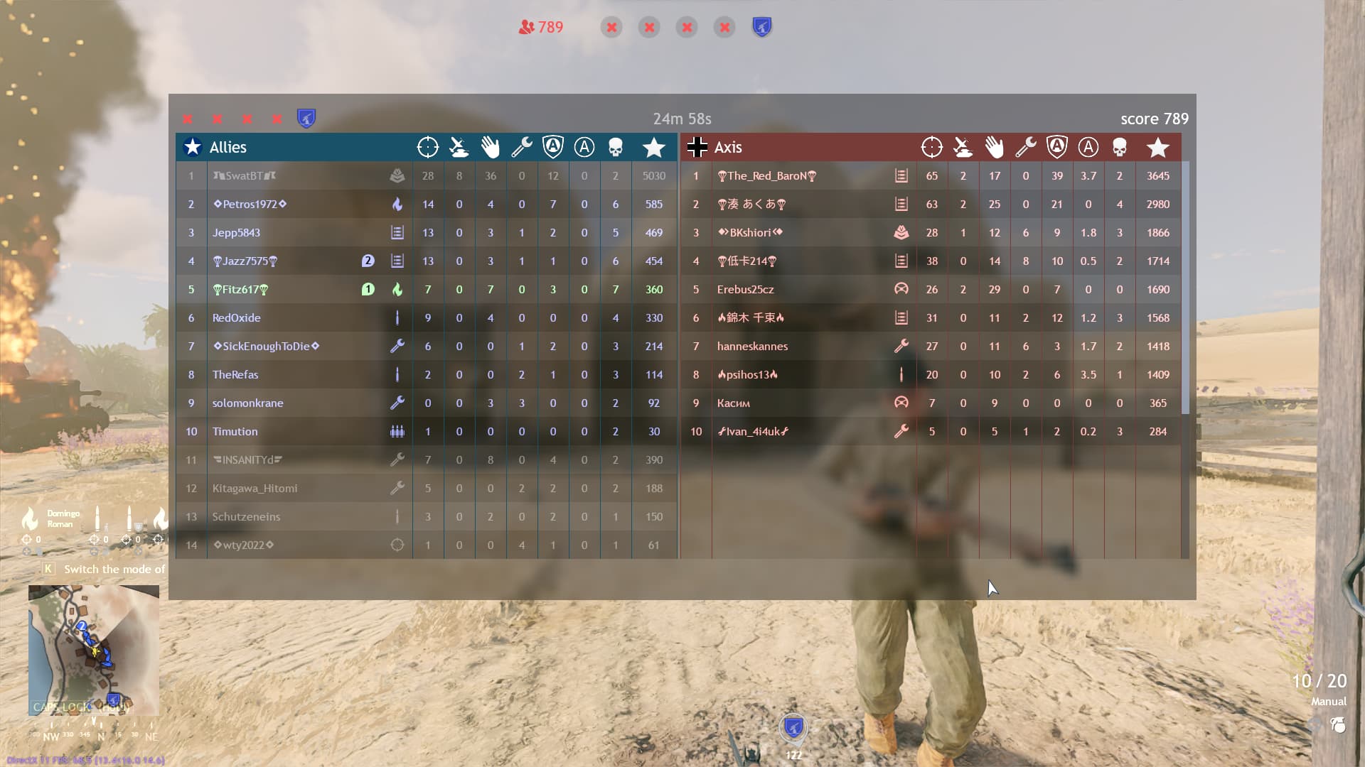 Normally it’s a lay down farming run in Tunisia for Allies but I have started seeing hackers pop up on the Italian side…laser beaming from across the map with an map 38 and squad wiping half my team in seconds. such things go on as time passes and Allies eventually lose.