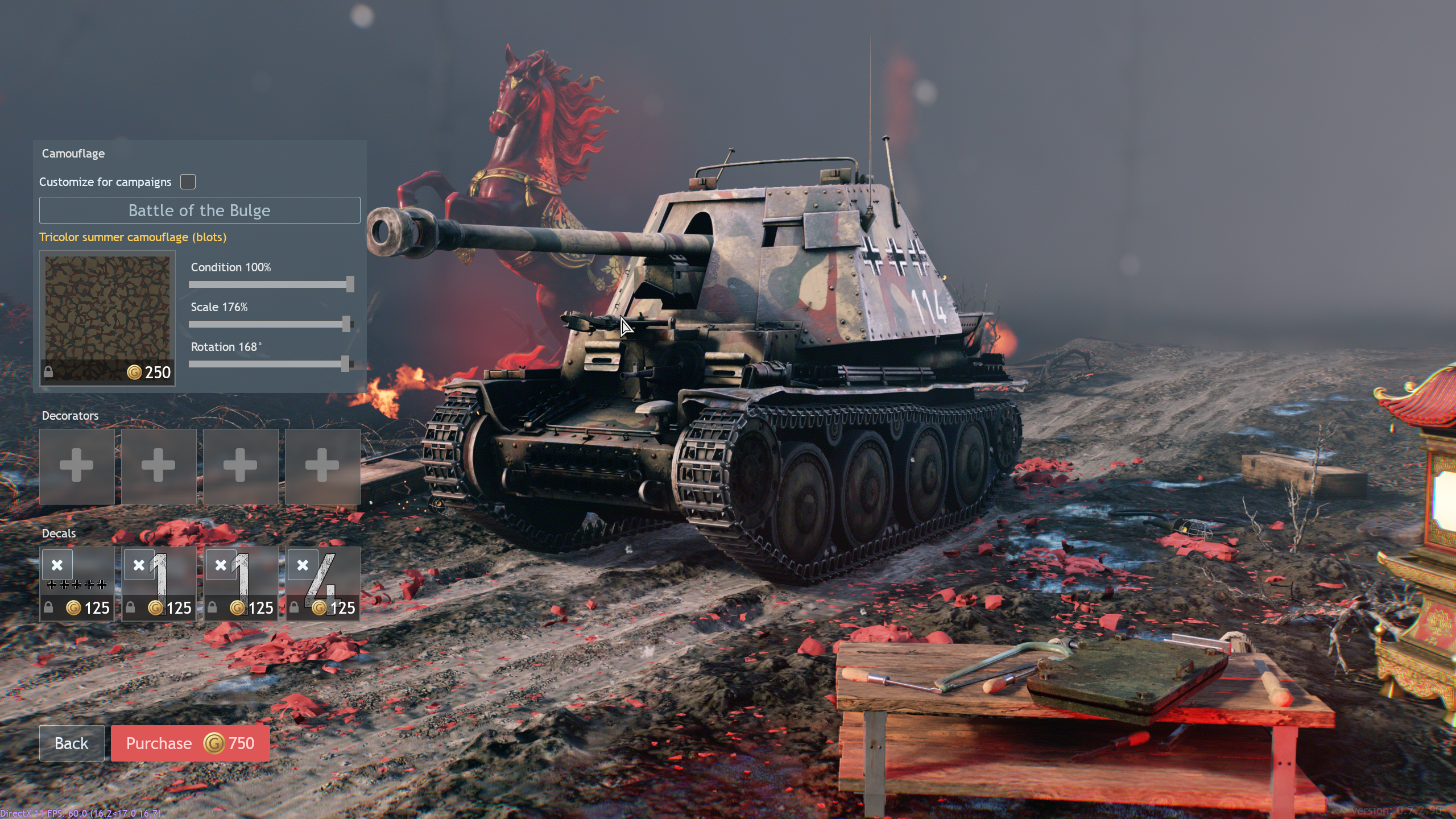 In WT, you can get a free seasonal skin if you have 100 vehicle kills or win 100 matches. Here, you can only buy them and there are few options. Honestly, it doesn’t seem difficult. I was even thinking if it could be detailed to the point where the map and paint job are automatically set for you.