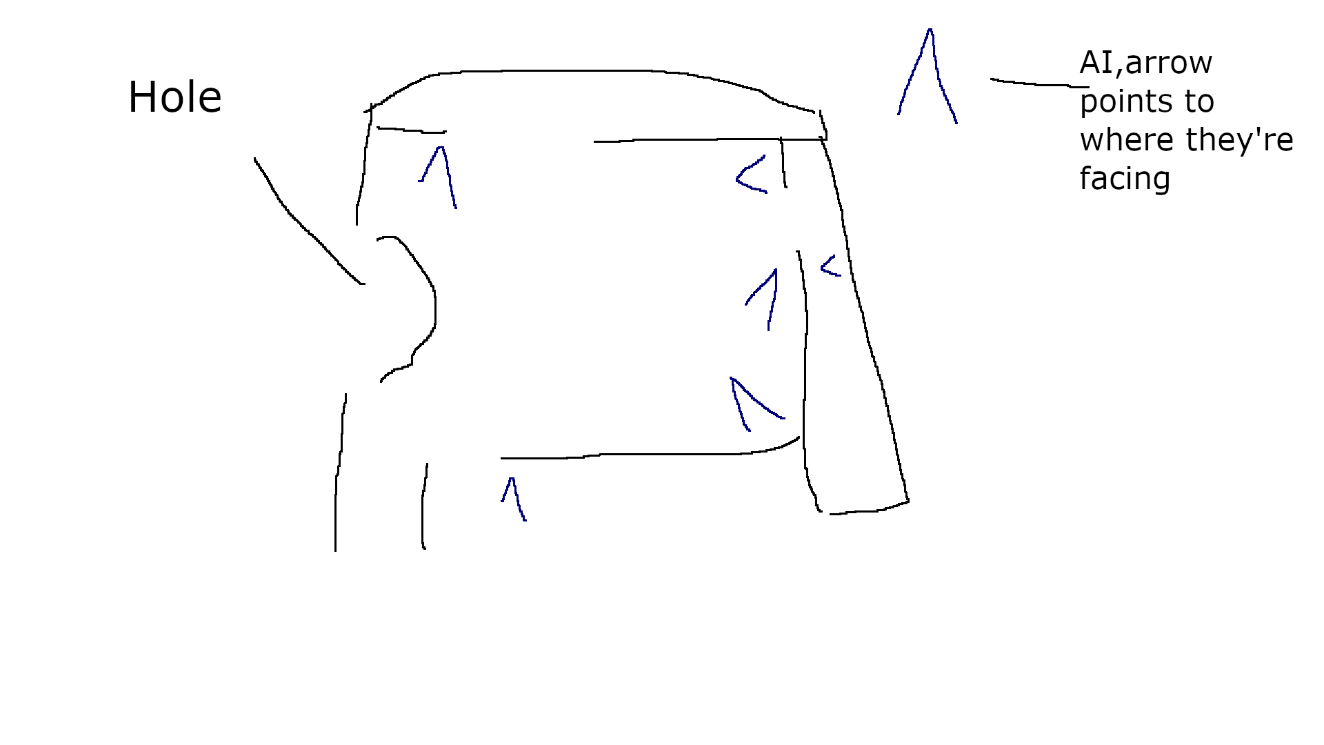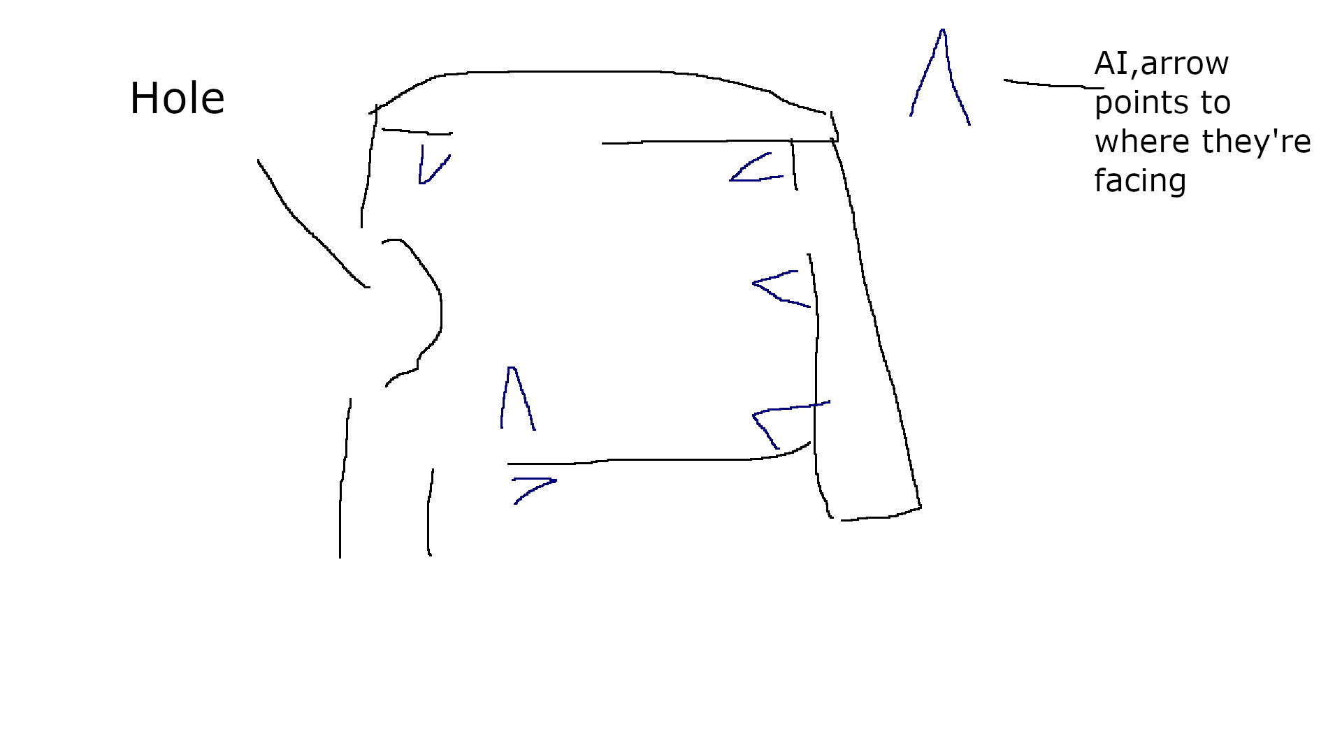 Using my high tech software and my awesome drawing skills I have made the first point on D-day. The first drawing is how AI currently acts in buildings.