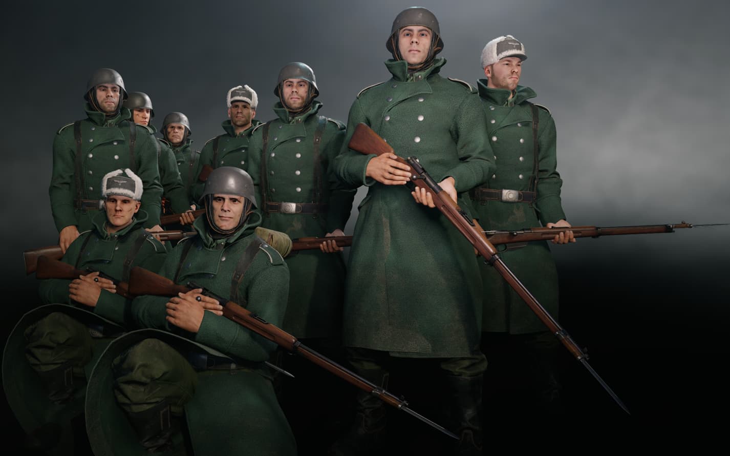 Veteran player with 6 K98s riflemen, an engineer, a radio operator, all soldiers rank III, +vitality, +revive speed, +reloading time, +3 WP grenades and 1 AP mine on each of them