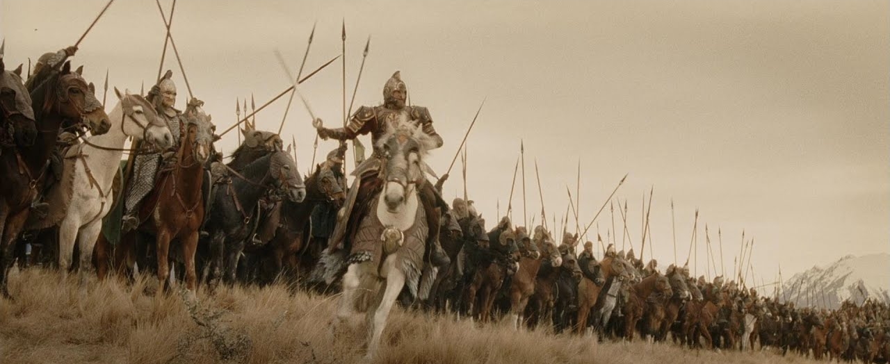 Kinda reminds me of the trope of a leader of an army riding horizontaly to his men before a cavalry charge and hyping them up: