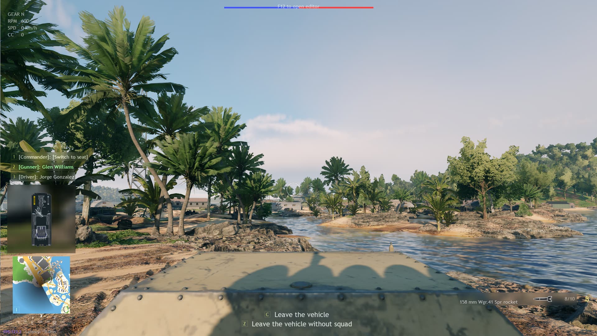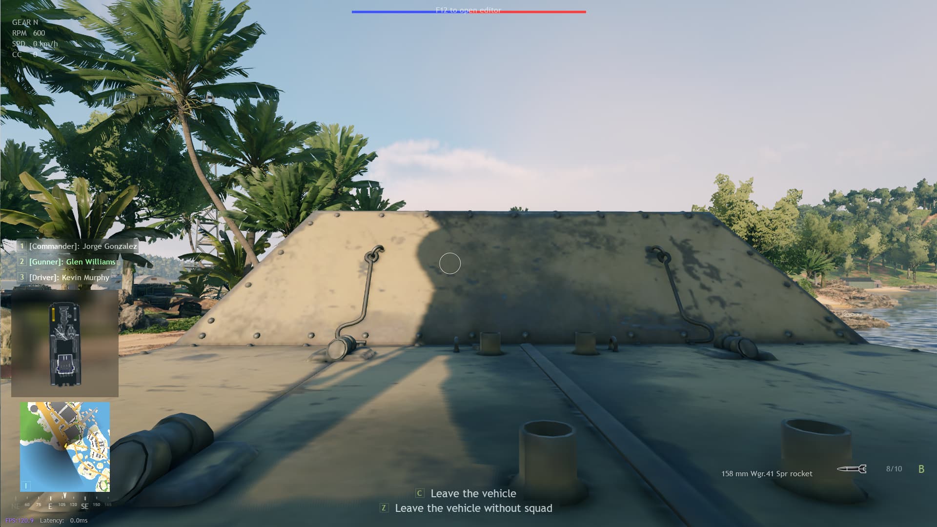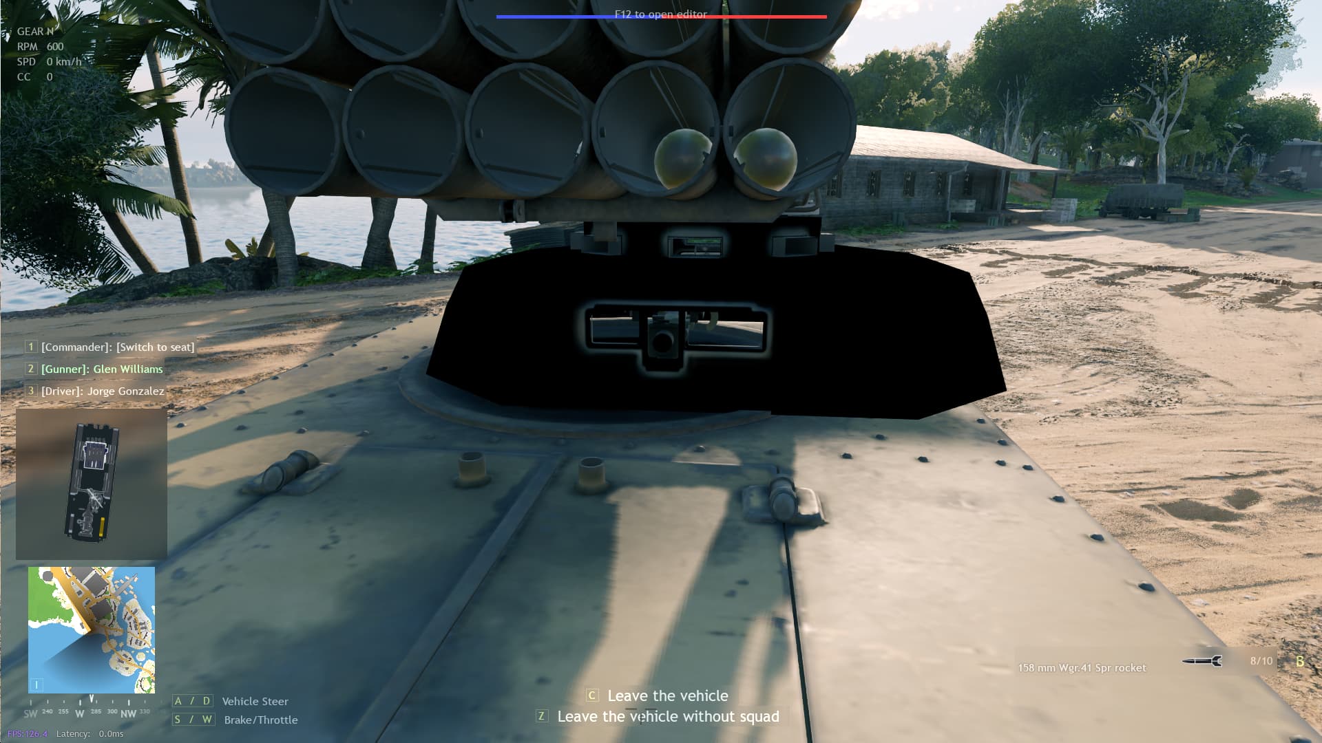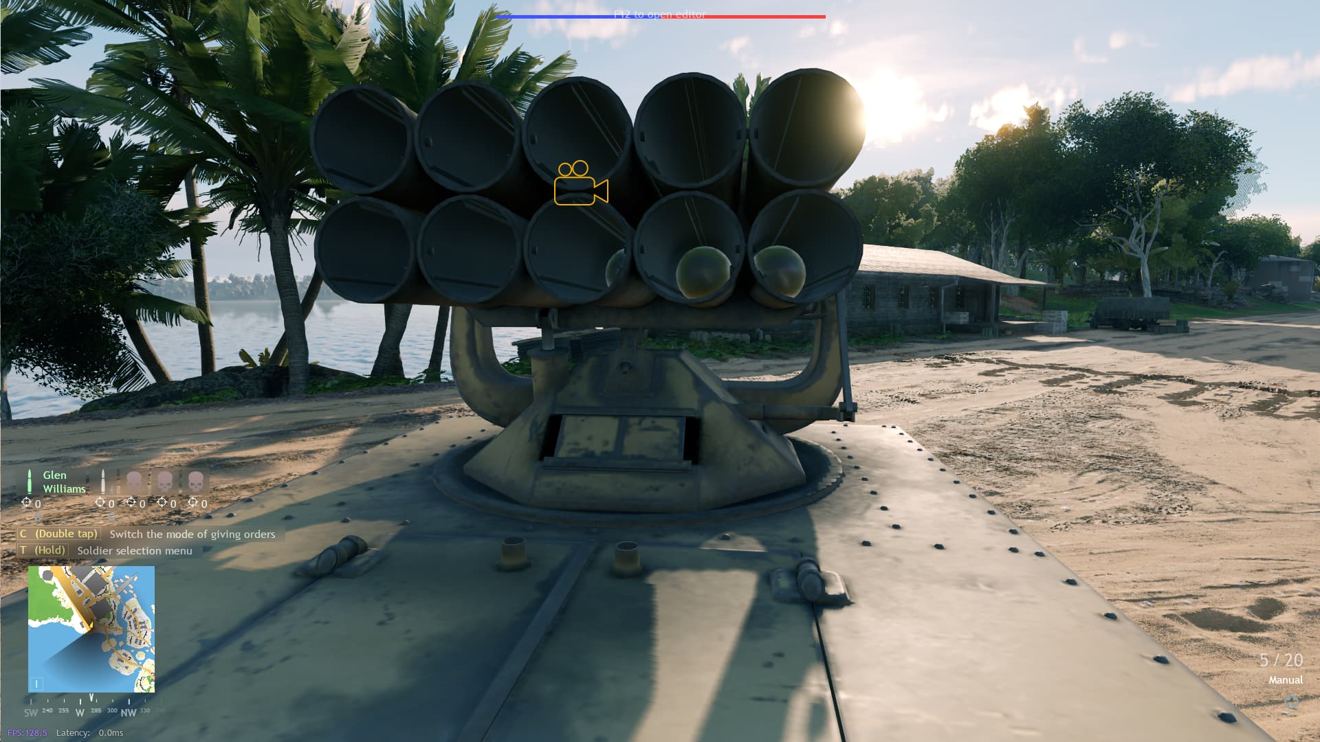 Move the gunner camera up to the front and center of the rocket launcher tubes.
