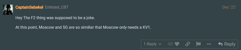 Dunno man. It’s just proof that people tend to dislike the decisions of the devs and 48 is actually low. People even get 70+ likes for roasting the devs. Again, it’s not because of me but with me. Tell me. How many people actually agreed with you that game is really good and the devs are doing great so far and everyone except you, devs, and “allies” suck?