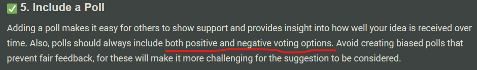 your thread is a suggestion. so it suggests improving or not improving something. when you dont have negative opinion, your poll looks like this