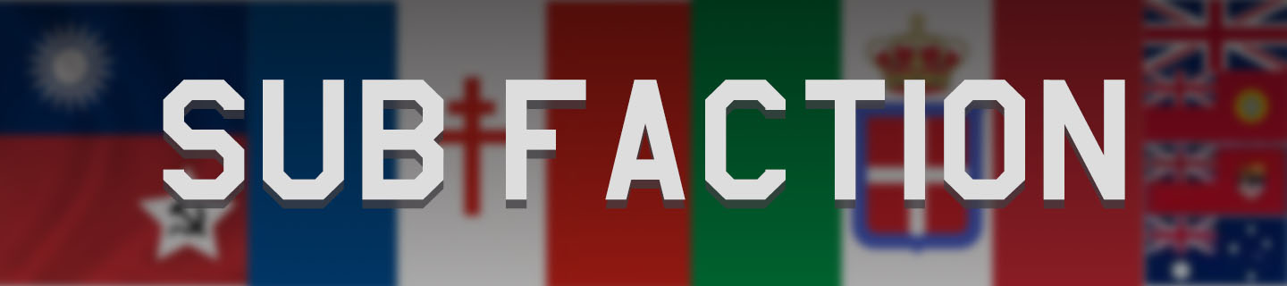 With the increasing of weapon and squad amounts, the original tech tree is a bit compact. To introduce new factions which actively participated in WWII but not with full ranks armament, it’s necessary to introduce Sub-Faction instead of inserting it into existed faction, to avoid breaking now design of main factions tech tree.