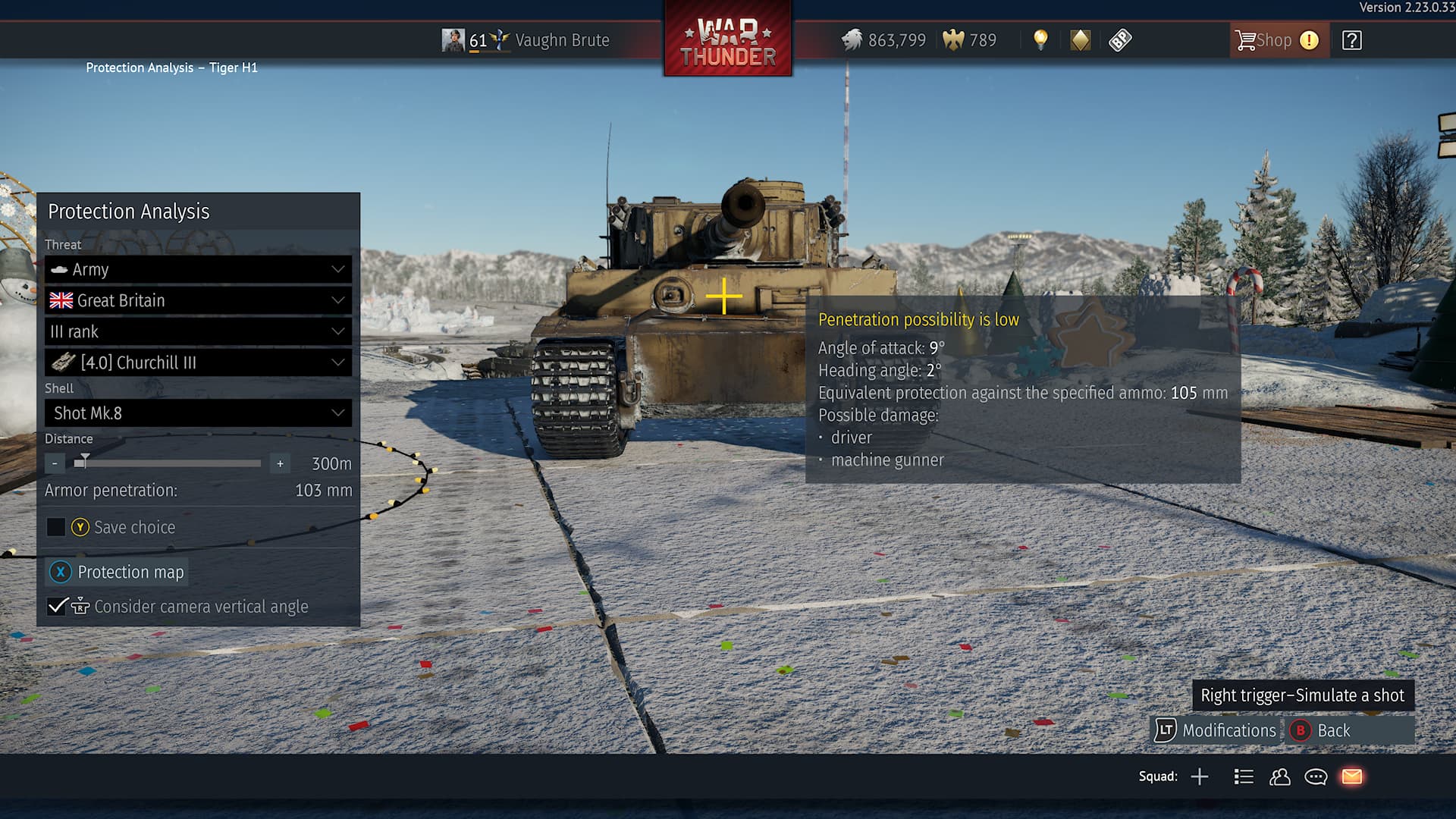 With this ammo and gun the Churchill can on paper pen the frontal armor of the Tiger but not consistently