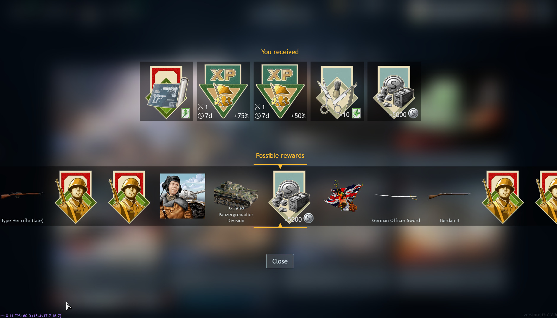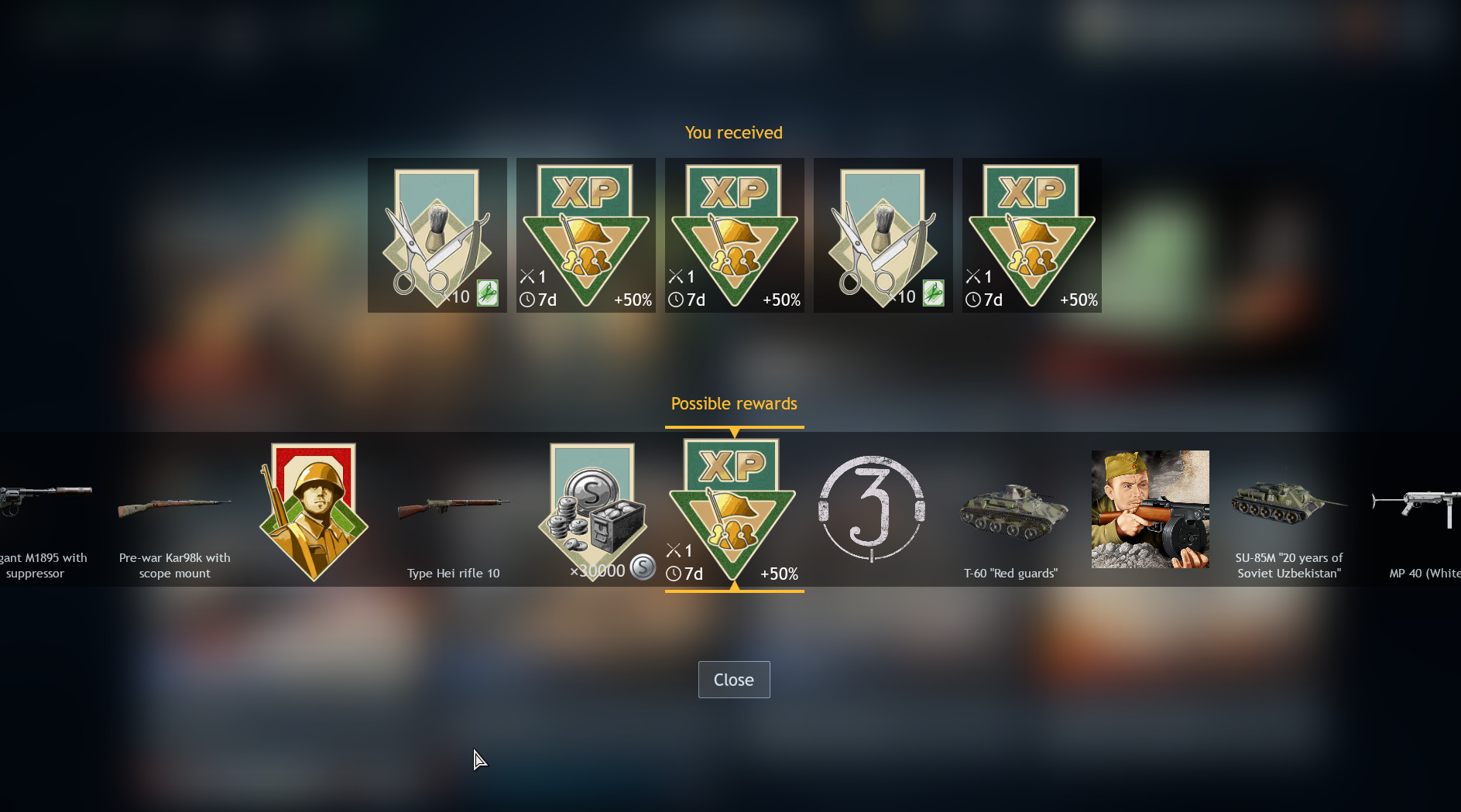 After spending about 250k silver and pulling roughly 50 times, the best items I obtained were the Berdan II and a Soviet sword. As for squads and event weapons, I had already acquired all of them beforehand, so they don’t drop from the crates anymore. I was hoping to get some good weapons or vehicles with cool skins, but ending up with a single-shot bolt-action rifle and just another sword I already own several of is disappointing.