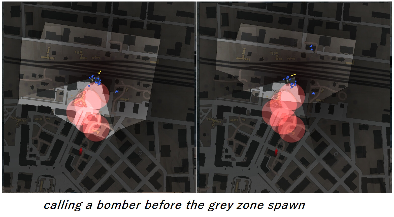 We should be able to call a bomb strike in the grey zone. Get it well placed against ennemy invader just in time.