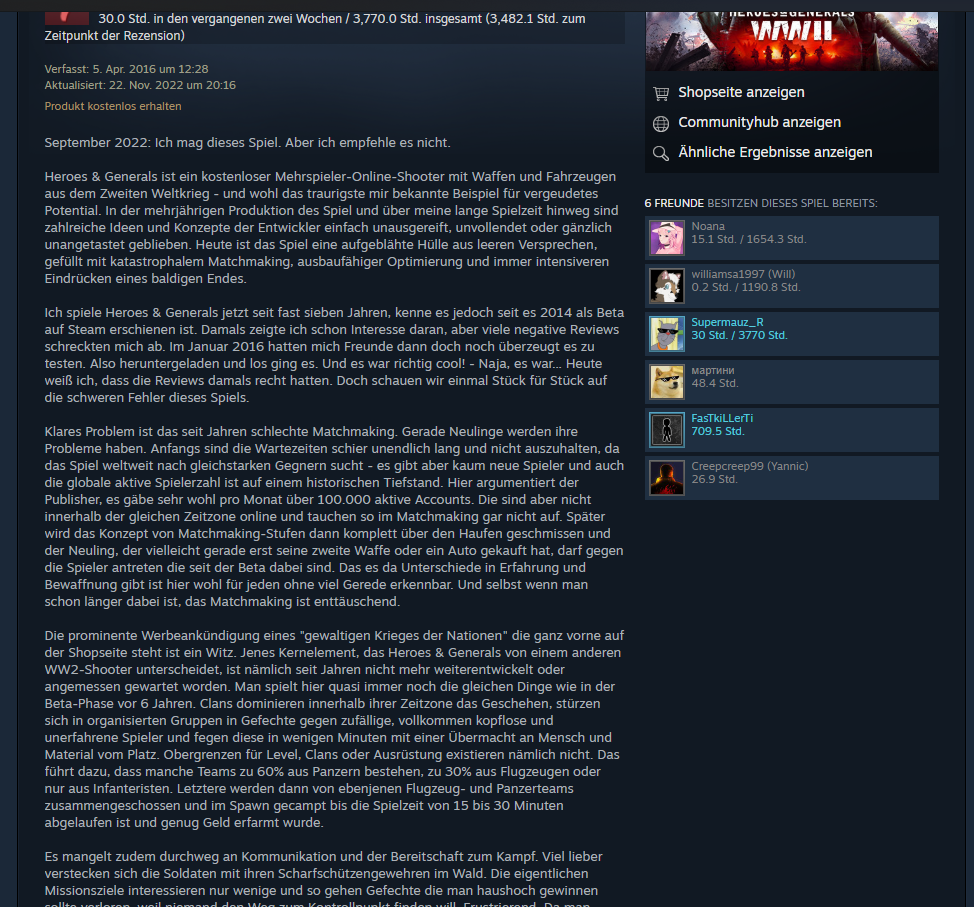 agree, better to ignore players that has been around since -14 and count on steam reviews with few hours.