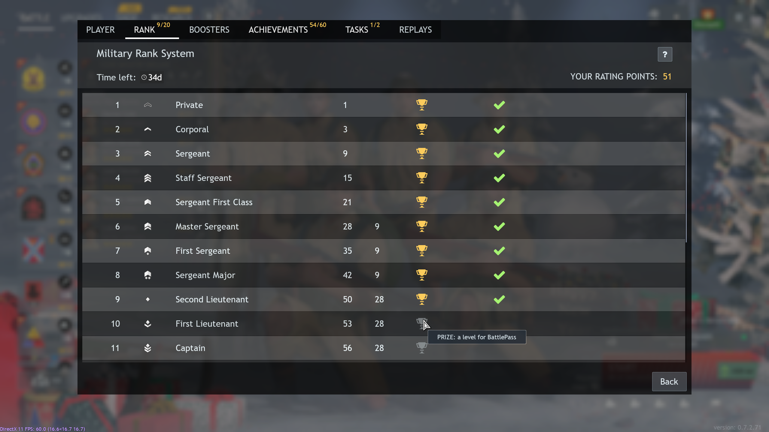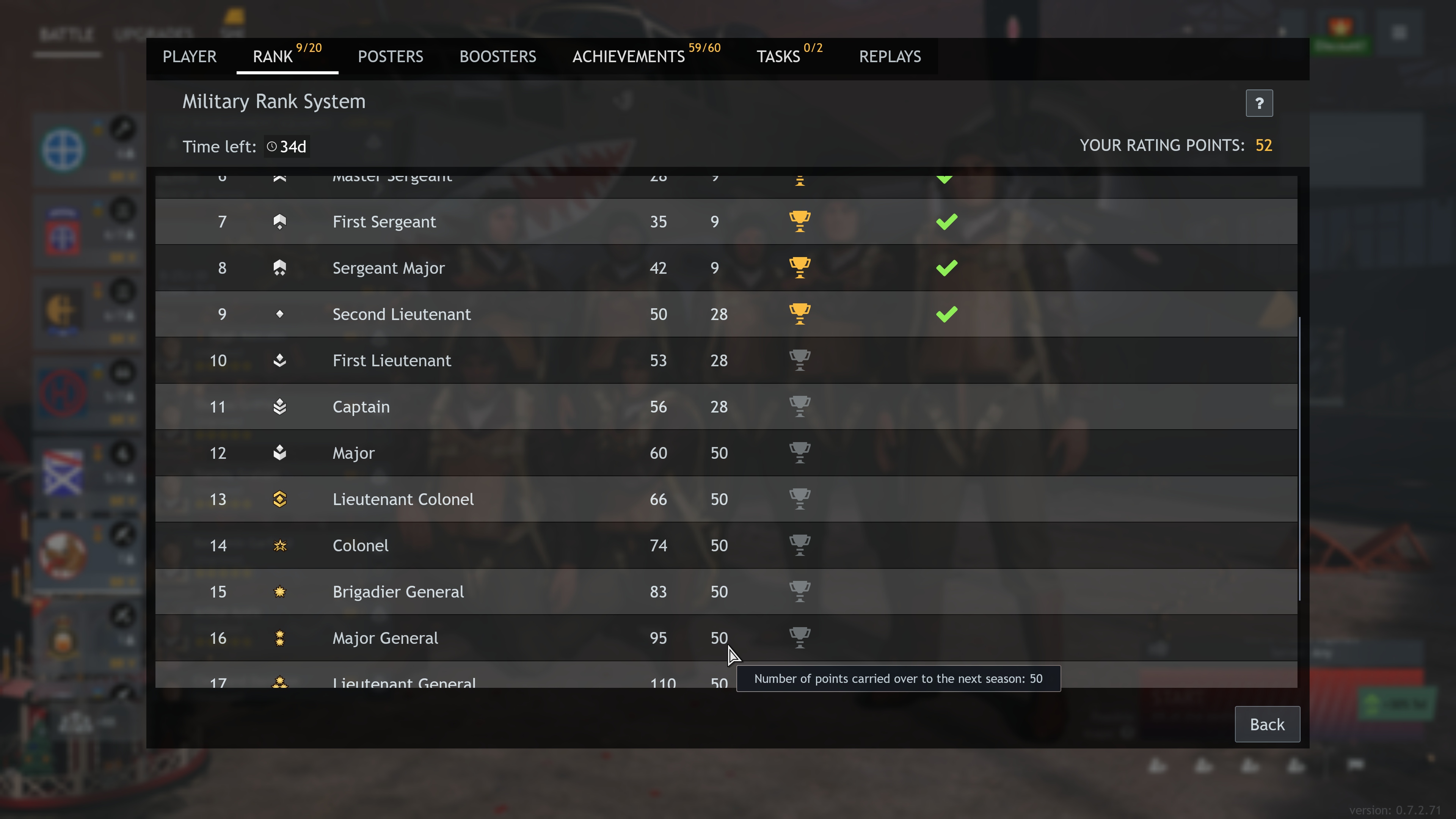 I had reached major general, giving me 50 points to carry over to the new BP season, making me start as 2nd lieutenant in the new seaon.