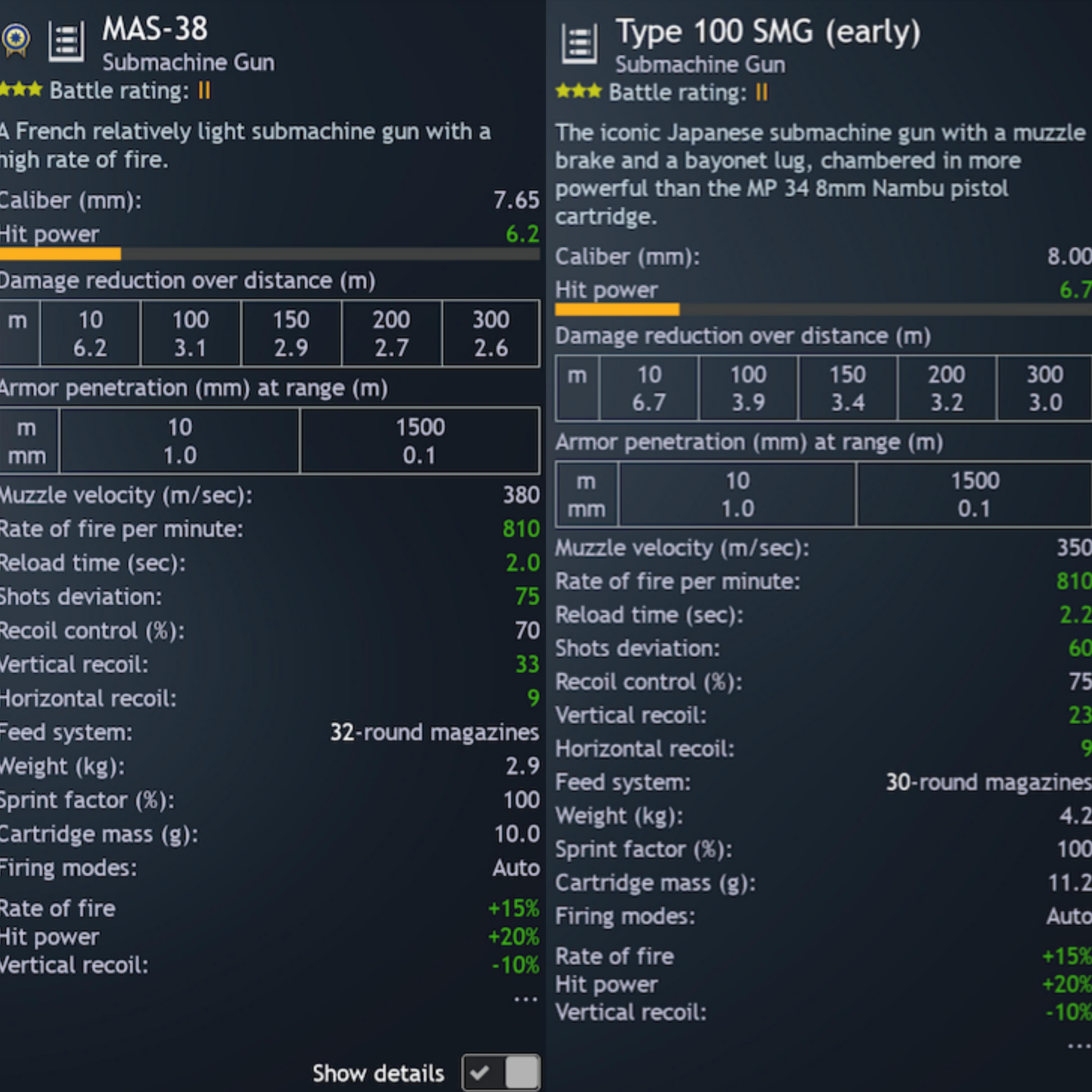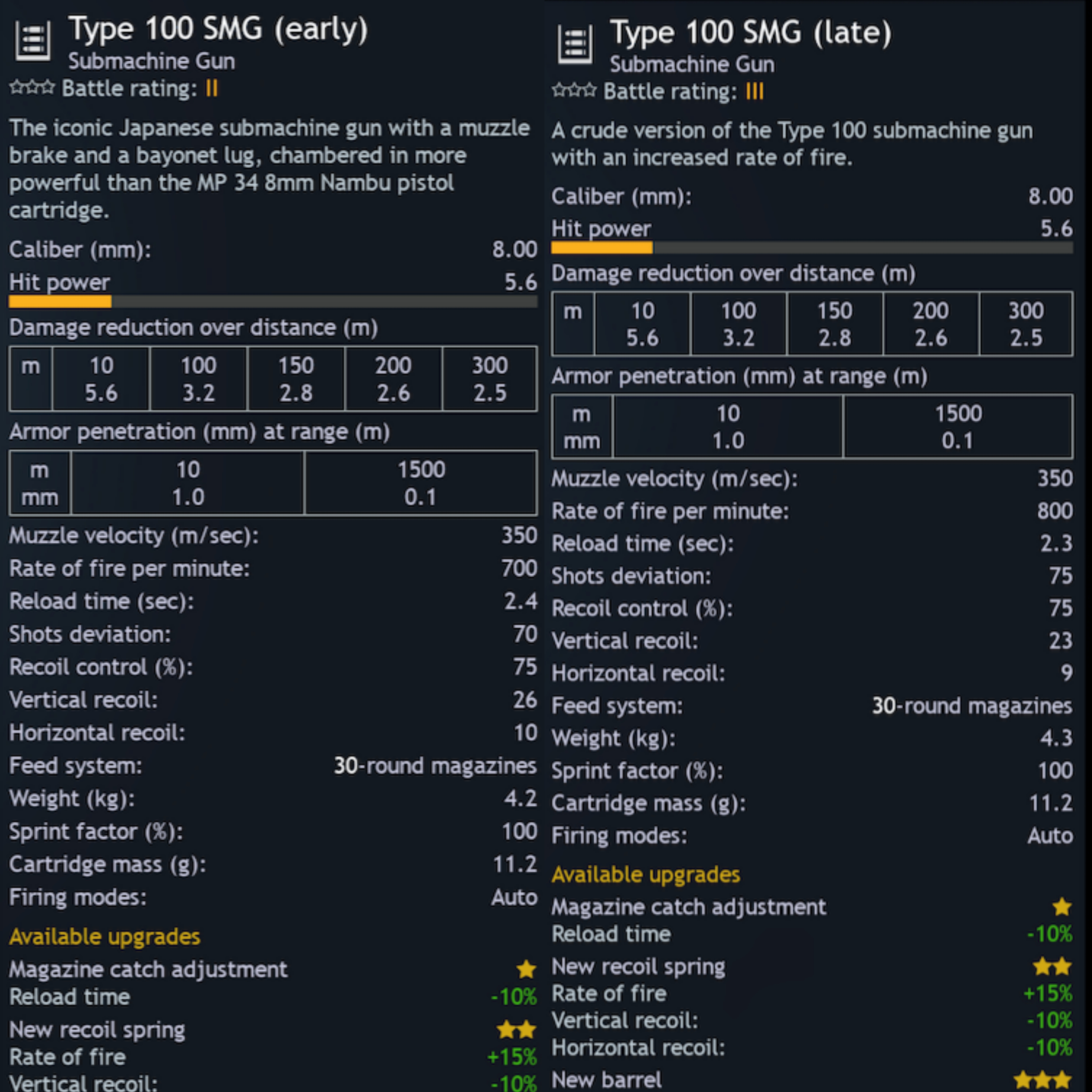 The type 100smg is still over performing at its br despite tweaks to keep it in line, here is a comparison between the type 100smg and the mas38 (a very competitive smgs):