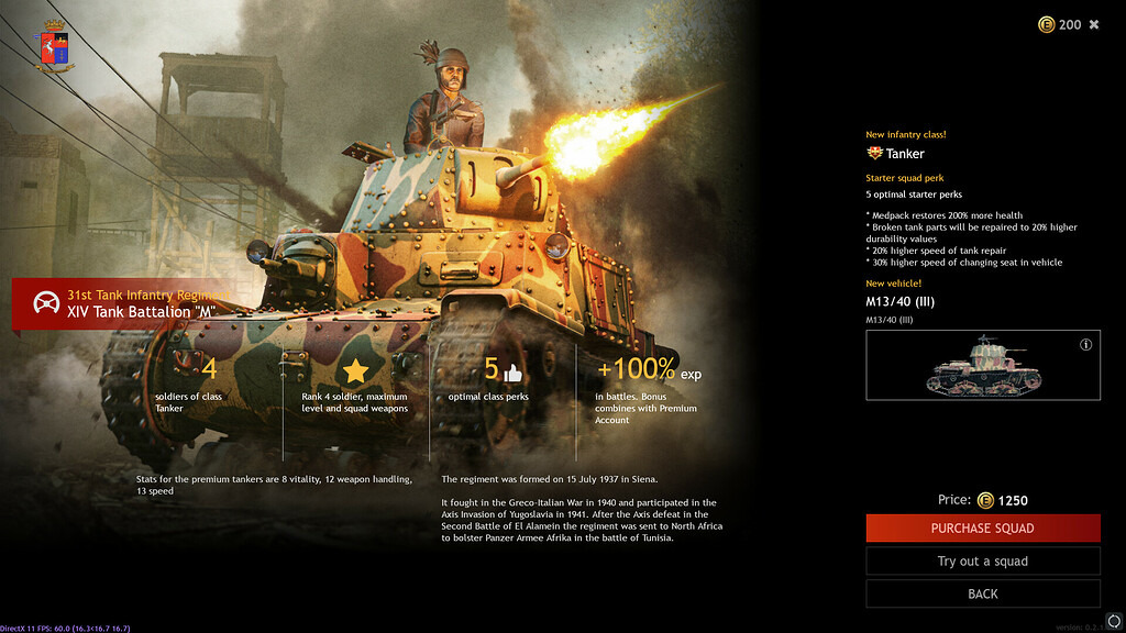 I’m going to contradict you about the American M2A4 tank from BR 1. I use it in BR 5 and I’m doing very well so far. When I come across a Tiger 1 or a Panther, their mobility makes it super easy to flank them, and if I get hit by the ammo, they’re cleaned up. And when I have a Tiger 2, I do the same. The mobility is so great that once I’m in range, I go down and lay down a charge, and that’s good, no more Tigers! Afterwards, I admit that it wouldn’t be a bad idea to see as many Italian tanks as German tanks, even if it means having anti-aircraft guns!