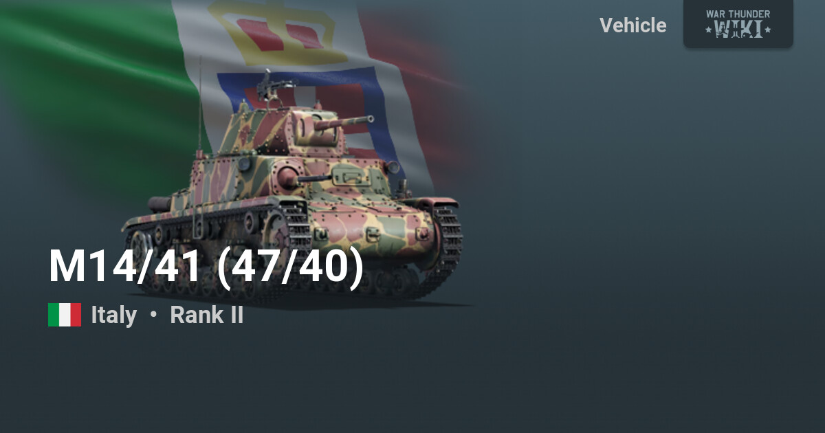 The M14/41 is a slight upgrade over the M14/41 in the tech tree, because of 2 main things different from the TT version. The most visibly notable one is the replacement of the dual 8mm Breda machine guns in the hull with a 13.2mm machine gun. This gun has 30 round magazines (300 rounds total) with a 3 second reload, and it’s shells can penetrate 28mms of armor, and has a manageable rate of fire of 450 RPM. The second major change is the refurbishment of the main weapon, upgrading to the 47 mm 47/40 mod.38 cannon, which has a more effective APHE shell than the M14/41’s, penetrating 62mms compared to 48mms, which is just enough to let it take on some more tough enemies a bit easier. I think this would be a cool event vehicle for BR1.