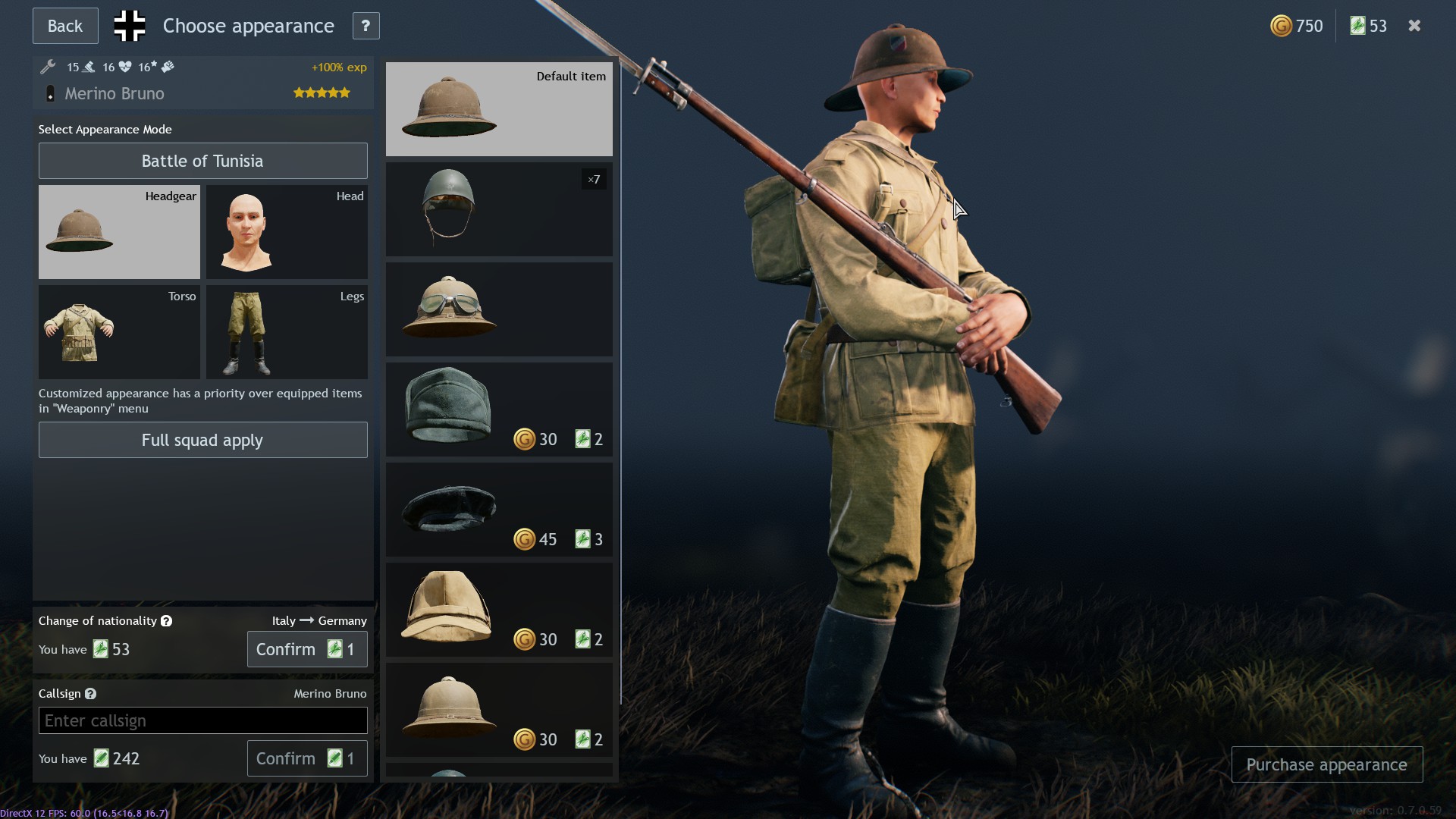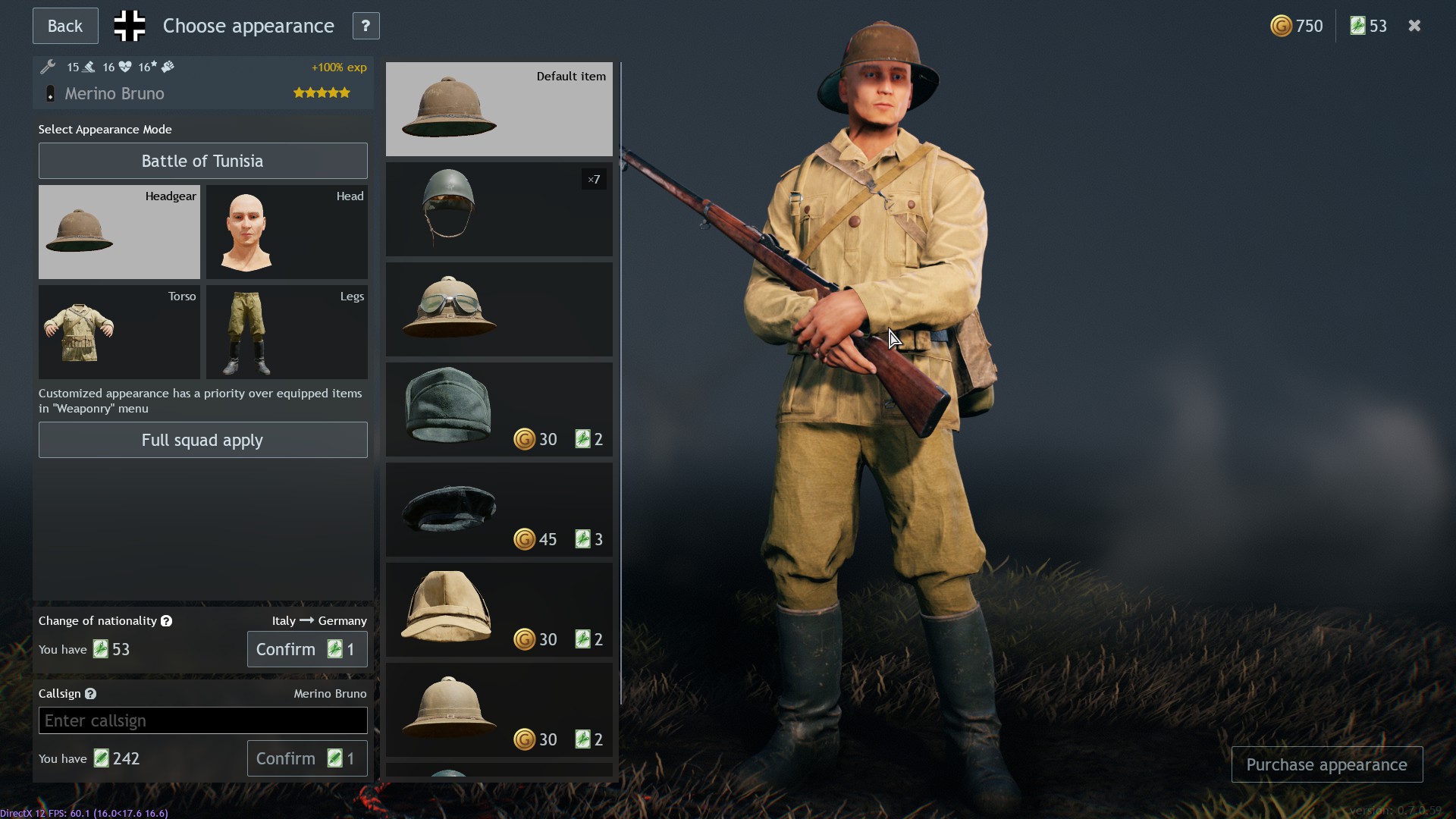 I don’t understand why Pith helmet is only available for Italian squad in Tunisia when it is clearly has German tricolor shield. Please make it available for German squad as well in Tunisia.