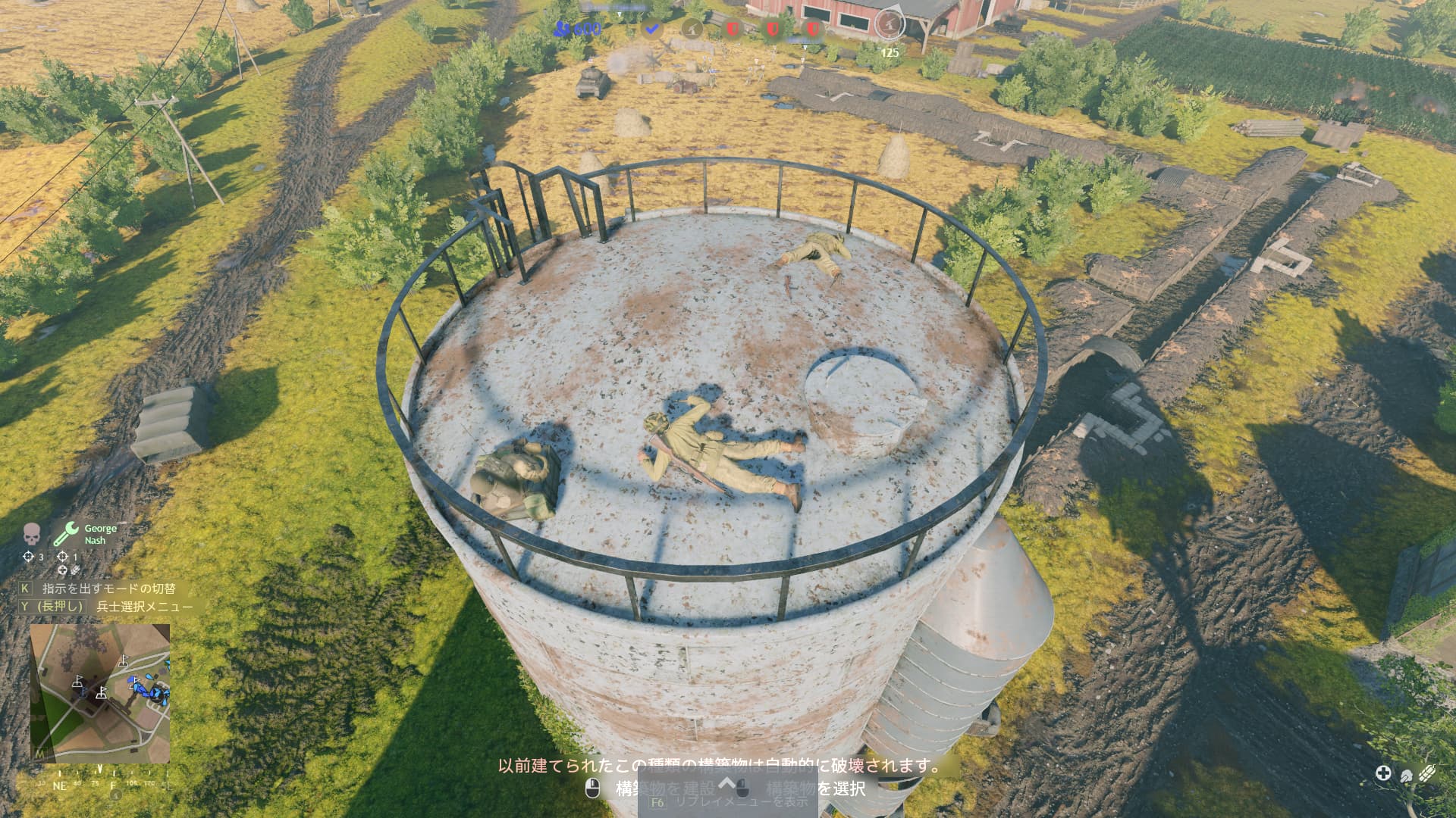 There was a guy who set up a rally point on top of a grain silo. Other players had probably spawned there by mistake. They try to get down the ladder, but the trouble is, bot can’t get down from the silo.