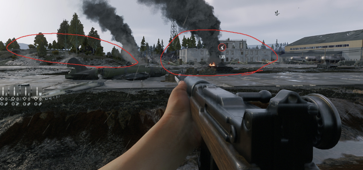 - Somehow overwhelm the enemy either on the hills or on the point and hope that whoever also spawned on the left-hill and hangar rally will provide cover fire so enemy cannot reinforce the objective