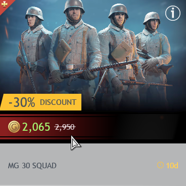 Especially for less unique squads such as the M1941 Johnson rifle squad. Those should come at a lower price than normal premiums from the same BR.