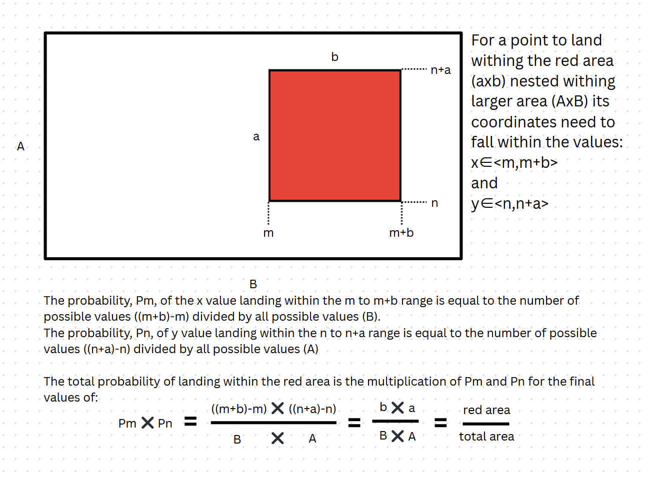 The probability does not care about how scattered the area you are covering is. It only cares about the amount of area covered