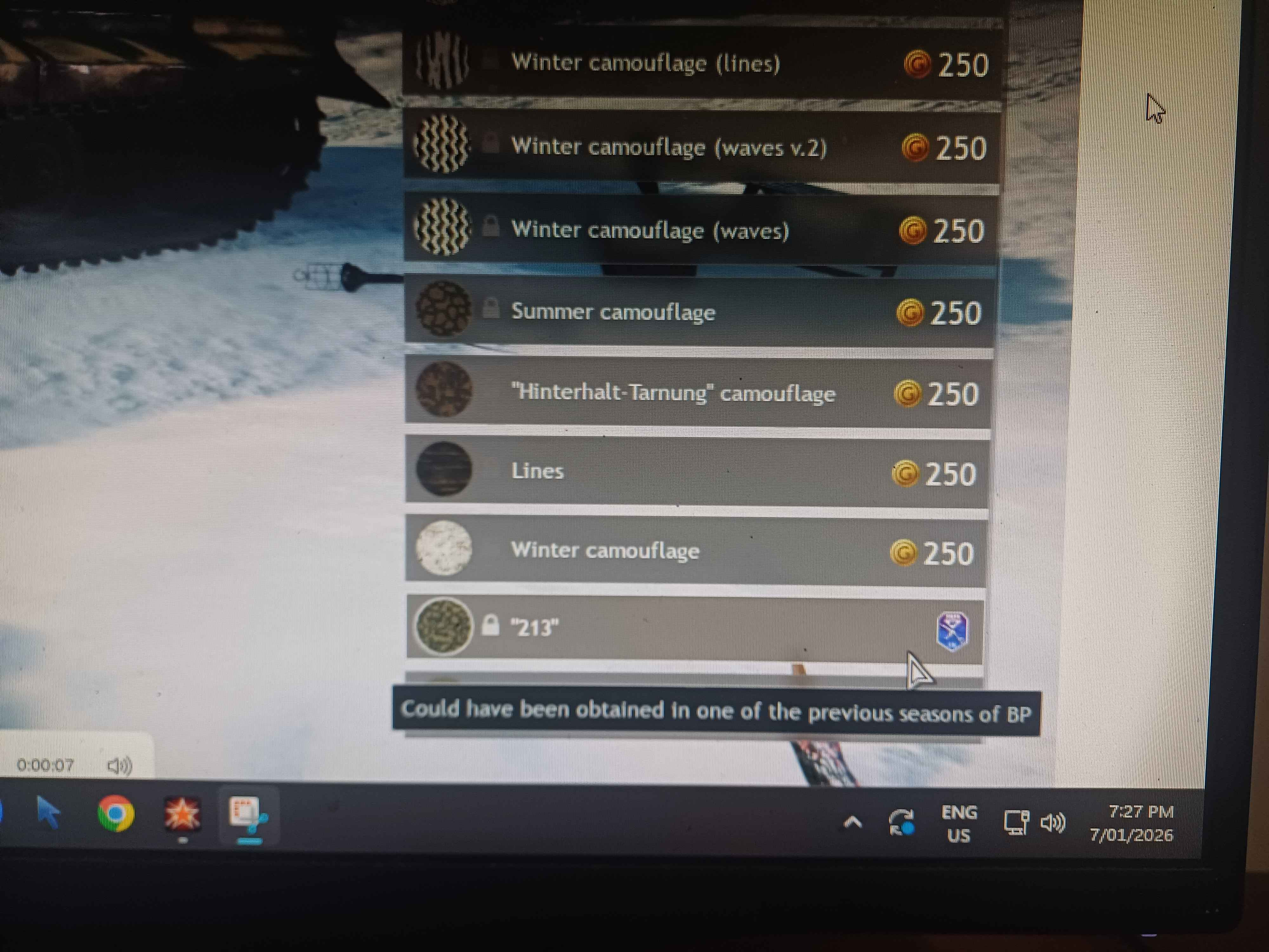 I just unlocked my tiger II and now i cant use camo “213”