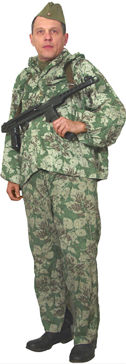 Guards Sergeant P. A. Daderkin on the 8th of June 1944 with a birch branch camo suit