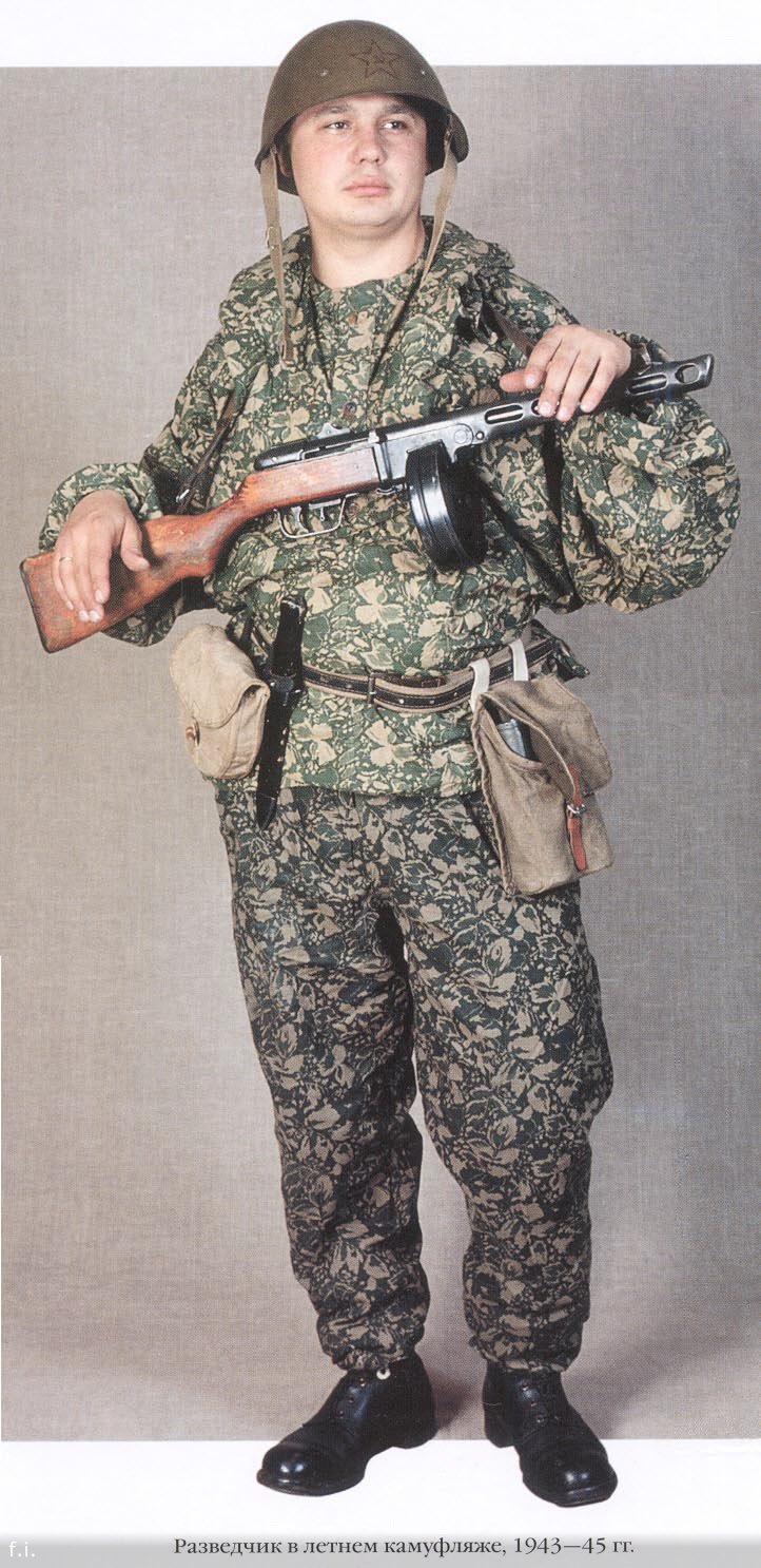 This pattern was widely used by scouts, snipers, sappers and paratroopers, only being second to the amoeba pattern in WW2 soviet usage.