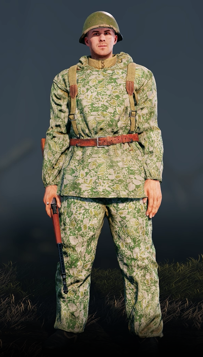 This is a camouflage pattern that was printed on the same suits as the amoeba patterns we have in the game which are the two piece MKK suits, they only require a retexture. It was introduced in 1941 so it is suitable for both Berlin and Stalingrad campaigns.