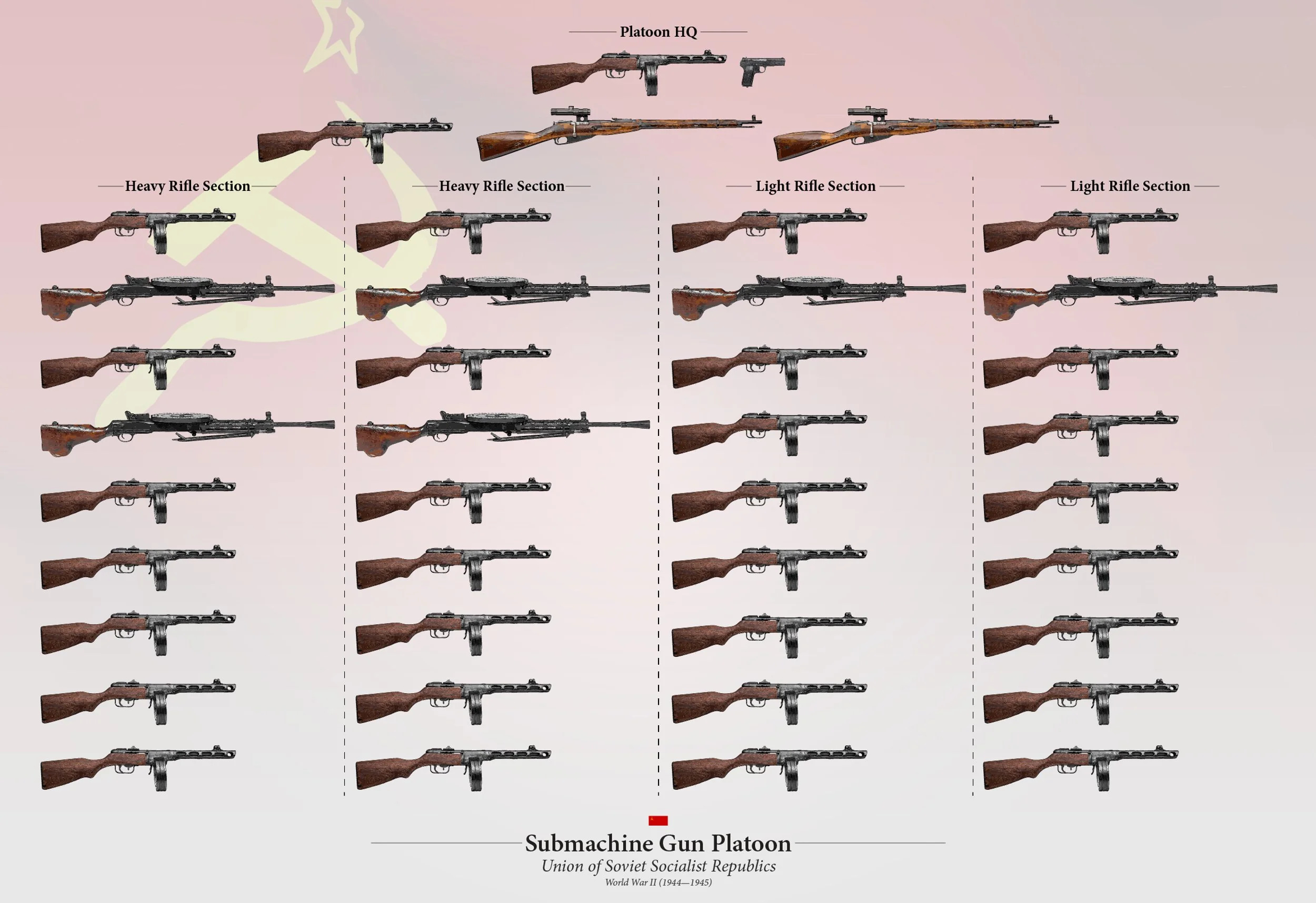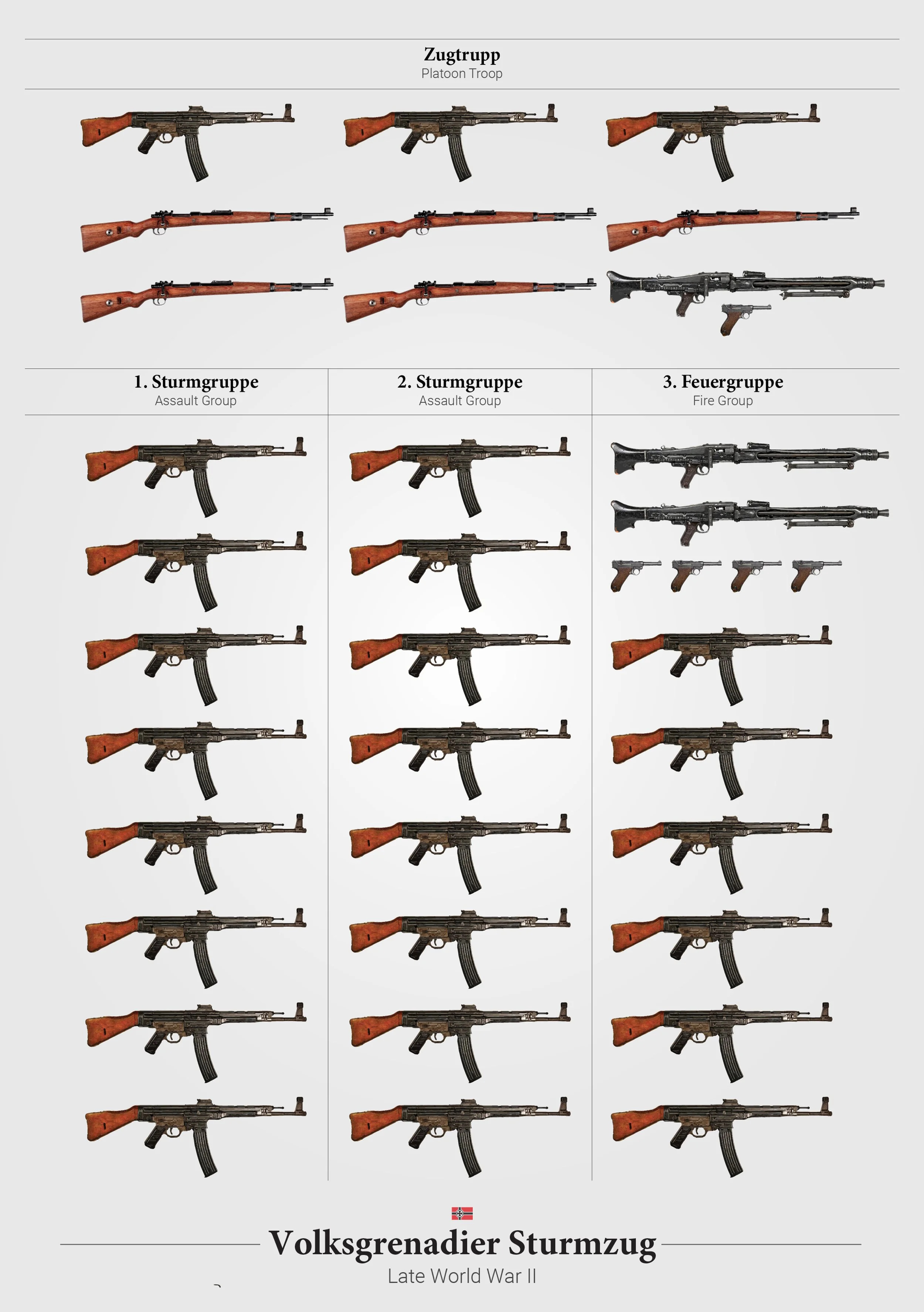I’ve always felt the Assault squad is a bit too small. Assault is supposed to represent Assault infantry, which the Soviet’s pioneered arming entire platoons with sub machine guns. Germany eventually created their own assault infantry in the Volksgrenadiers, arming entire platoons with Stgs.