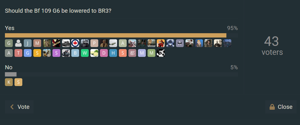 The Bf 109 G6 is currently a fight on BR4, but is underpowered for how high it’s placed. It has an average speed, turn time, and flight performance that doesn’t stand out, has the same, at this point quite weak, bombload of four 50kg bombs; the same payload of a BR1 fighter, only a single 20mm cannon with 200 rounds, and two quite meh 13mm machine guns. This selection of guns is very similar to the Bf 109 F4 Trop’s, of which the main difference is the lack of bombs and the secondary MGs being slightly better, but even that aside, the guns are underwhelming compared to the P51 and Ki-100’s.