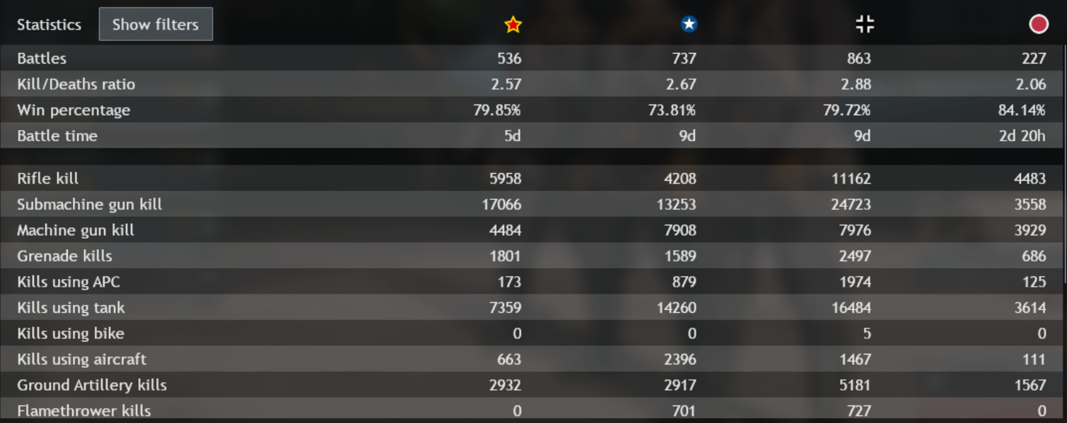 All you need to know about how cracked Soviet submachine guns are, 16848 SMG kills while only 1477 rifle kills ![]()