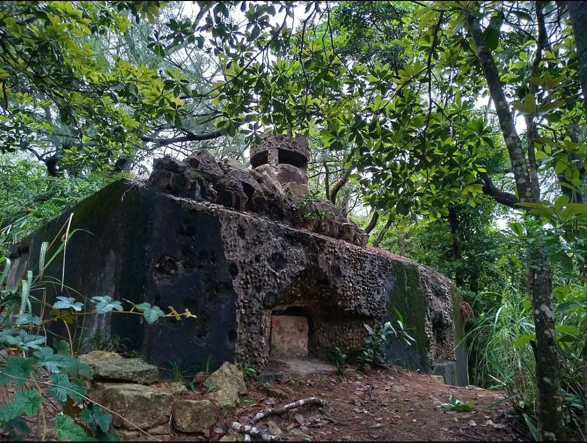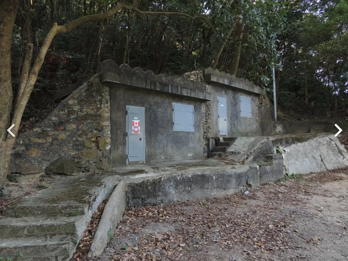 At the No. 1 machine gun fort on Zhadian Mountain, this machine gun fort and the No. 2 machine gun fort below are both guarded by the 9th platoon of the 3rd company of the Hong Kong Volunteer Defense Force. These two machine gun forts caused many casualties to the Japanese army, but the Japanese also threw grenades into the defenders inside from the ventilation port to attack them. However, the defenders inside the machine gun fort still stubbornly resisted under siege, even though the ammunition of the machine guns was exhausted, they continued to resist with rifles. It took the Japanese more than 12 hours to capture these two machine gun forts, and the outer walls of the machine gun forts were marked with bullet wounds.