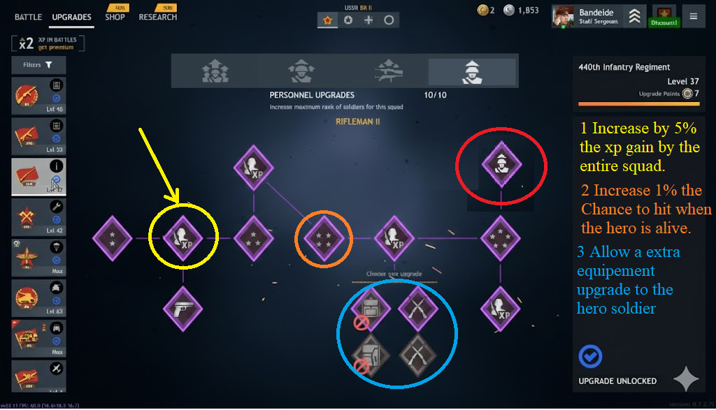 - Veteran skills: Allows the hero soldier have max level 6, give 6 points in all atributes. to give a perk boost. ( red circle )