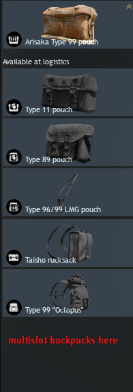 To balance them out, there will be no backpack that grants 2 grenades and the ammo equivalent of a large ammo pouch, for example. Just have them give the small equivalent of each one. And well, not having a backpack that gives you one slot and ammo in each category, since that would outclass the rest.