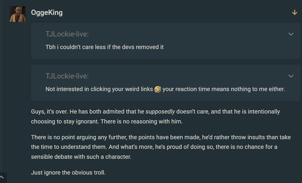 Cope harder dude, I’ve given plenty of reasons in past posts. Yet you all fail to give me any significant reason to why it is so “game breaking’”