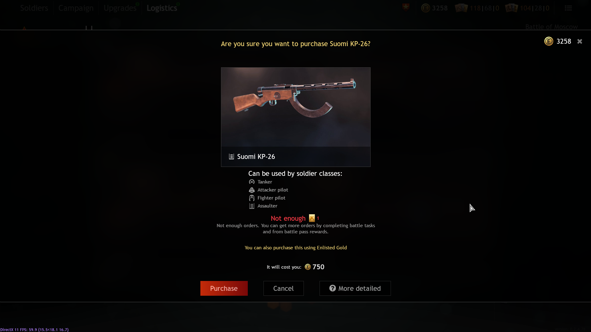 you dont have gold order ticket now so you can buy it with gold coins, but i have gold order and dont want to spend it just yet , i want to buy weapon from previous season but game forces me to buy that weapon only with that gold order ticket, i want to be able to choose method of payment and to use coins instead, ofc only on weapon from previous seasons (i dont want to try what will happen if i click on the weapon itself in logistics since i dont want to accidentally spend the damned ticket)