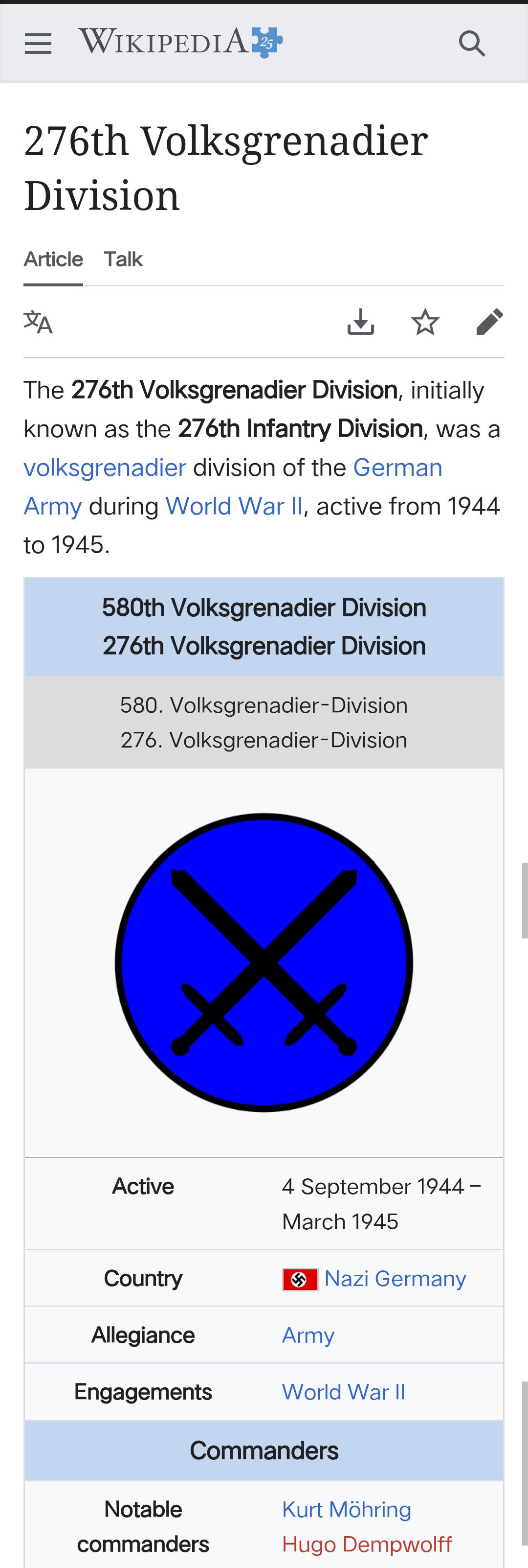 The regiment was composed of remnants of the renamed 580th Infantry Division and the 276th Infantry Division, as well as new recruits.