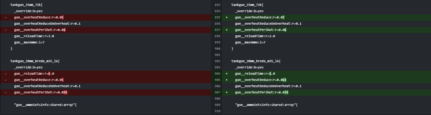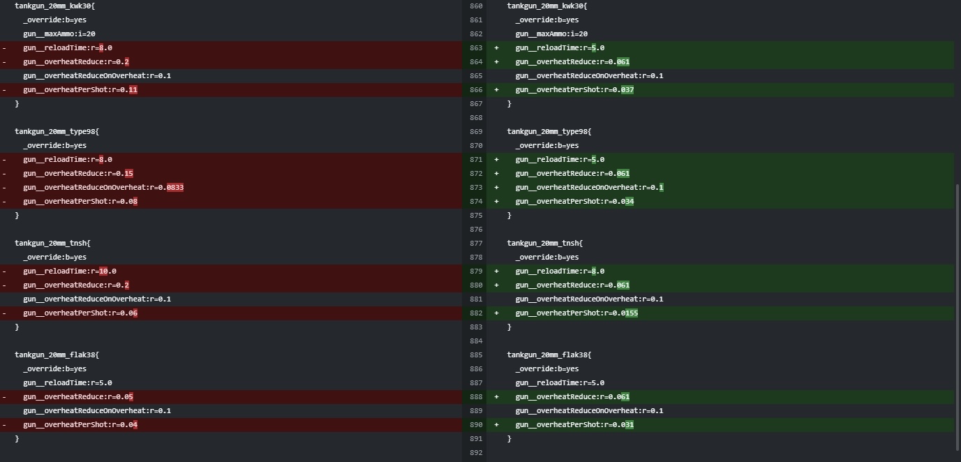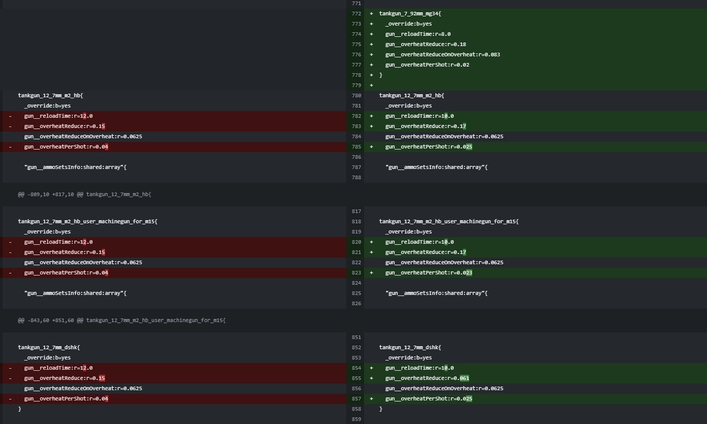 The MG 34, DShK, M2HB and the 20/25mm cannons all received lower overheat, and some also got faster reload reload times