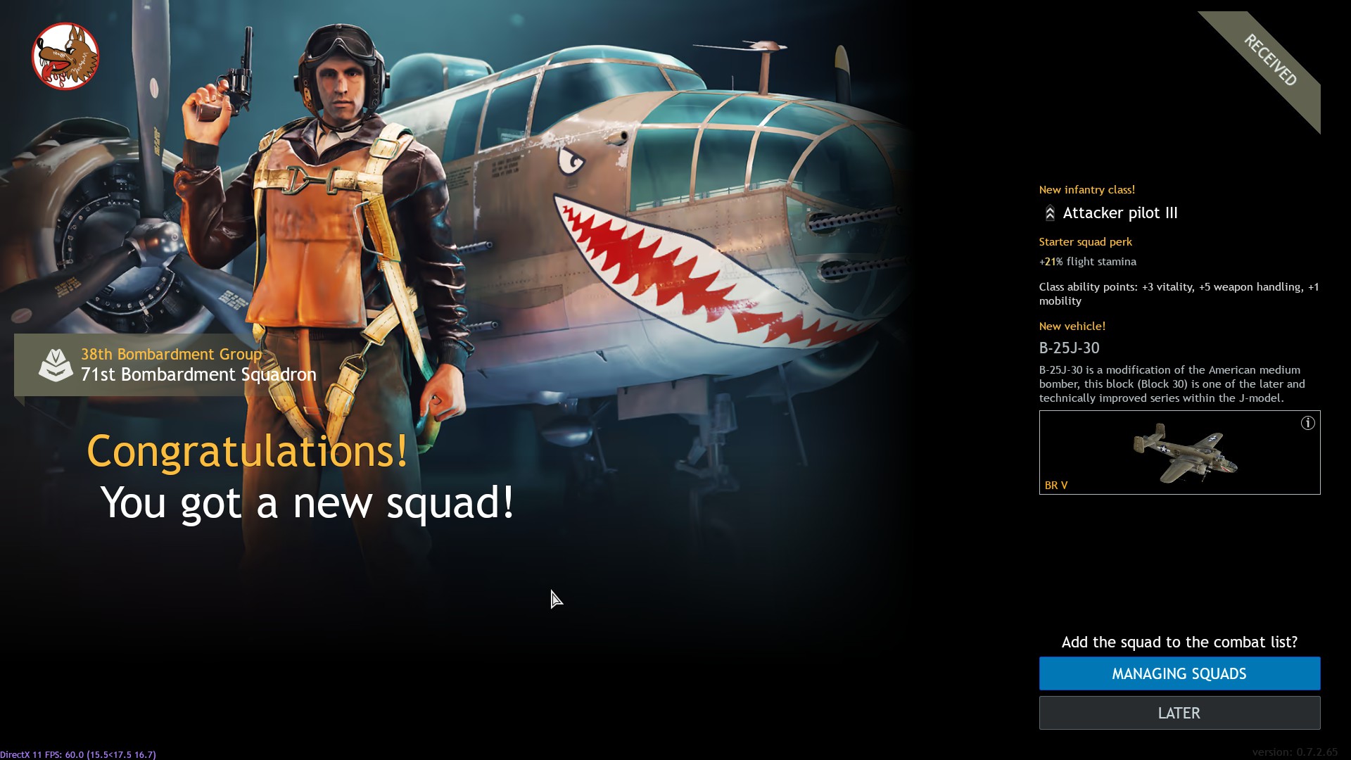 Since we got a new Attacker Pilot III squad (71st Bombardment Squadron) WITH B-25J-30, it would make sense for it to get access to P-47D-28 since it is unlocked later down in the tech tree.