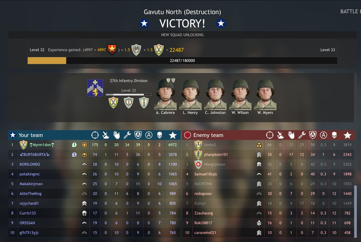 Pacific USA faction is fun. Please guys, come populate it again, there’s only so much a lone Canuck can do. Most Japanese “Vets” aren’t that good… They mostly rely on flamethrowers, grenade launchers and bomber strikes…